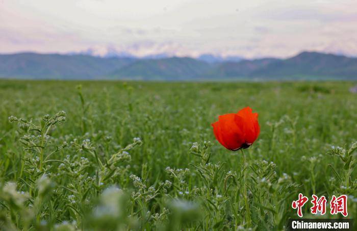 原标题:新疆新源:天山红花映草原