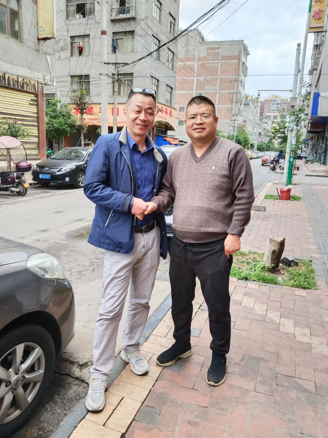 湖北恋情婚姻服务创始人刘鹏先生(左)与贵州樱桃节之父深情握别