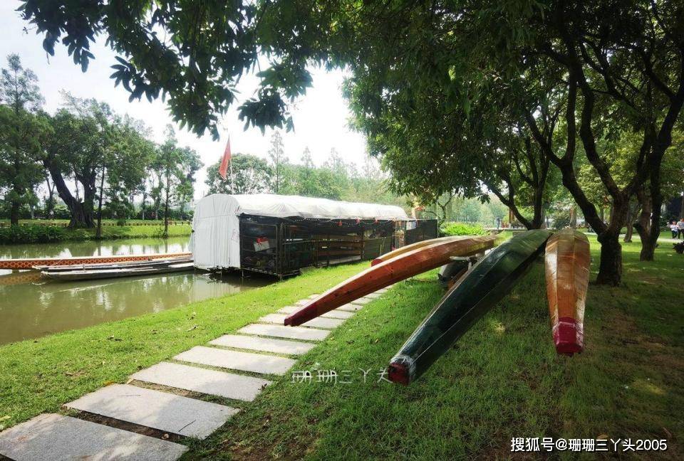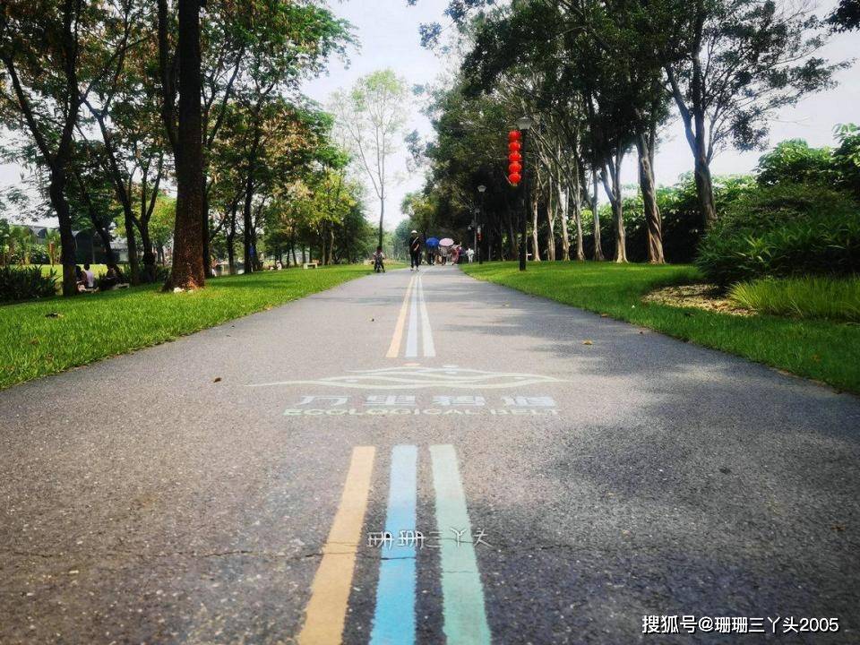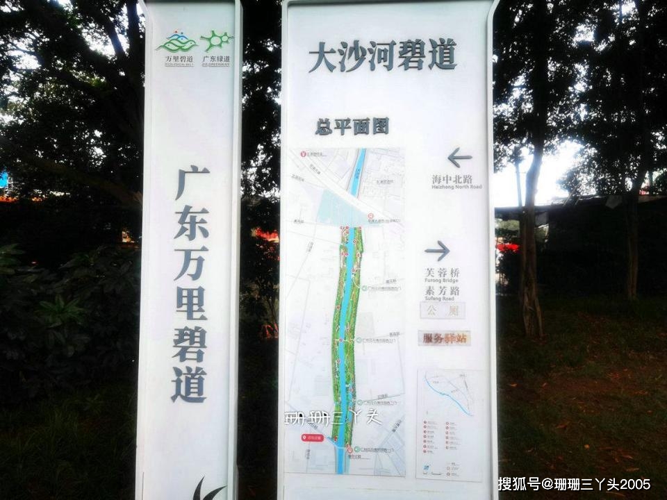 出发的路上,珊珊三丫头开始搜集起这个湿地公园的情况,在网上有这样一段介绍:大沙河湿地公园是广州市荔湾区“水秀花香生态区”规划的五个生态区之一,在广州亚运会期间就落成。整个大沙河全长 5.2 公里,南北走向,其中的 1.6 公里河段穿过广州花卉博览园,两岸近 3000 亩地都被花卉环绕,大沙河上散落分布的湿地小岛,是广州市区内难得一见的生态景观。现在在湿地公园内有龙船码头、芙蓉桥、陶然亭、金色走廊、芳菲岛……等景观。2021年8月,荔湾区在大沙河湿地公园基础上升级改造,该工程起于素芳路,止于海中北路,长1.1公里,总面积12万平方米,2021年底完工,被广州市河长办评为“广州市2021年度优质碧道”,是广州市碧道建设的典范。