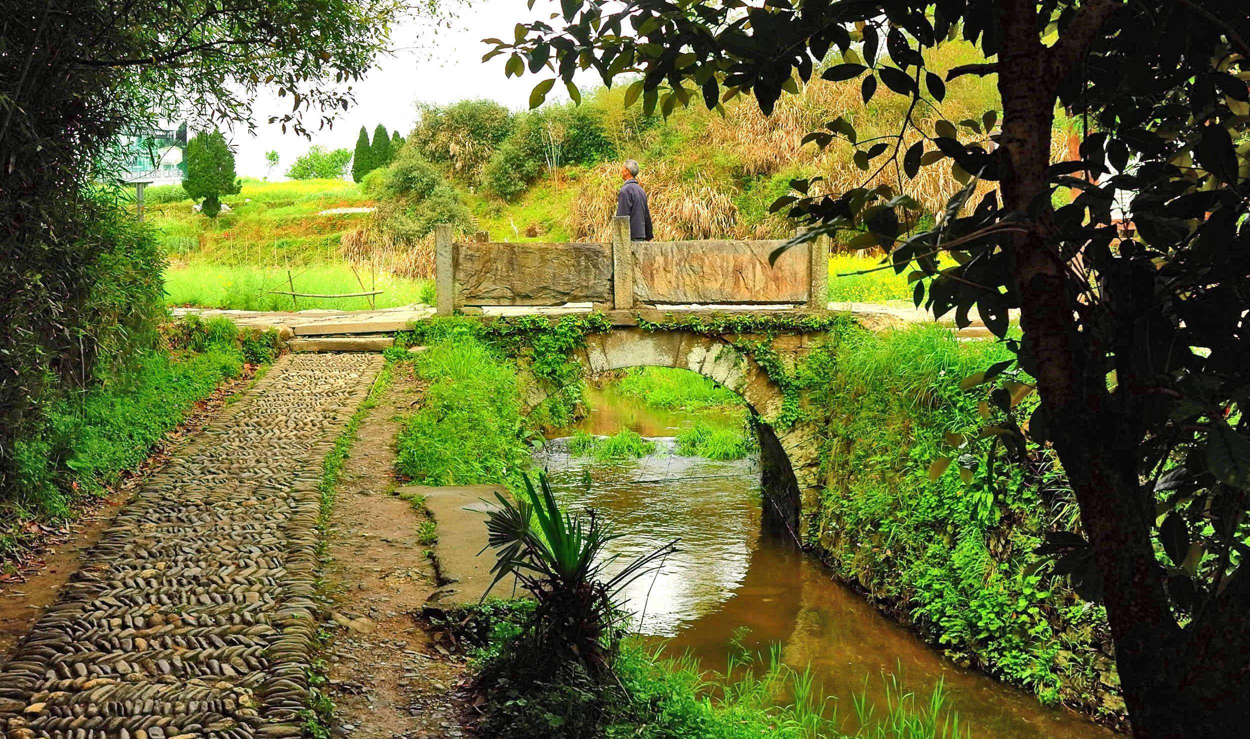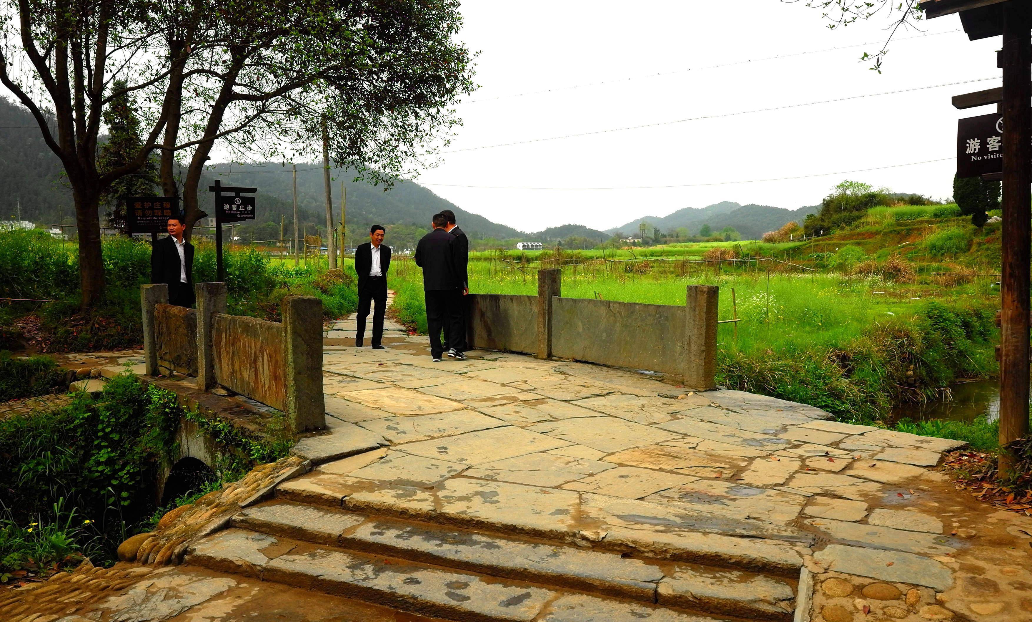 古驿路上的小桥。也是景区边界,那几个人好像是景区的管理人员。
