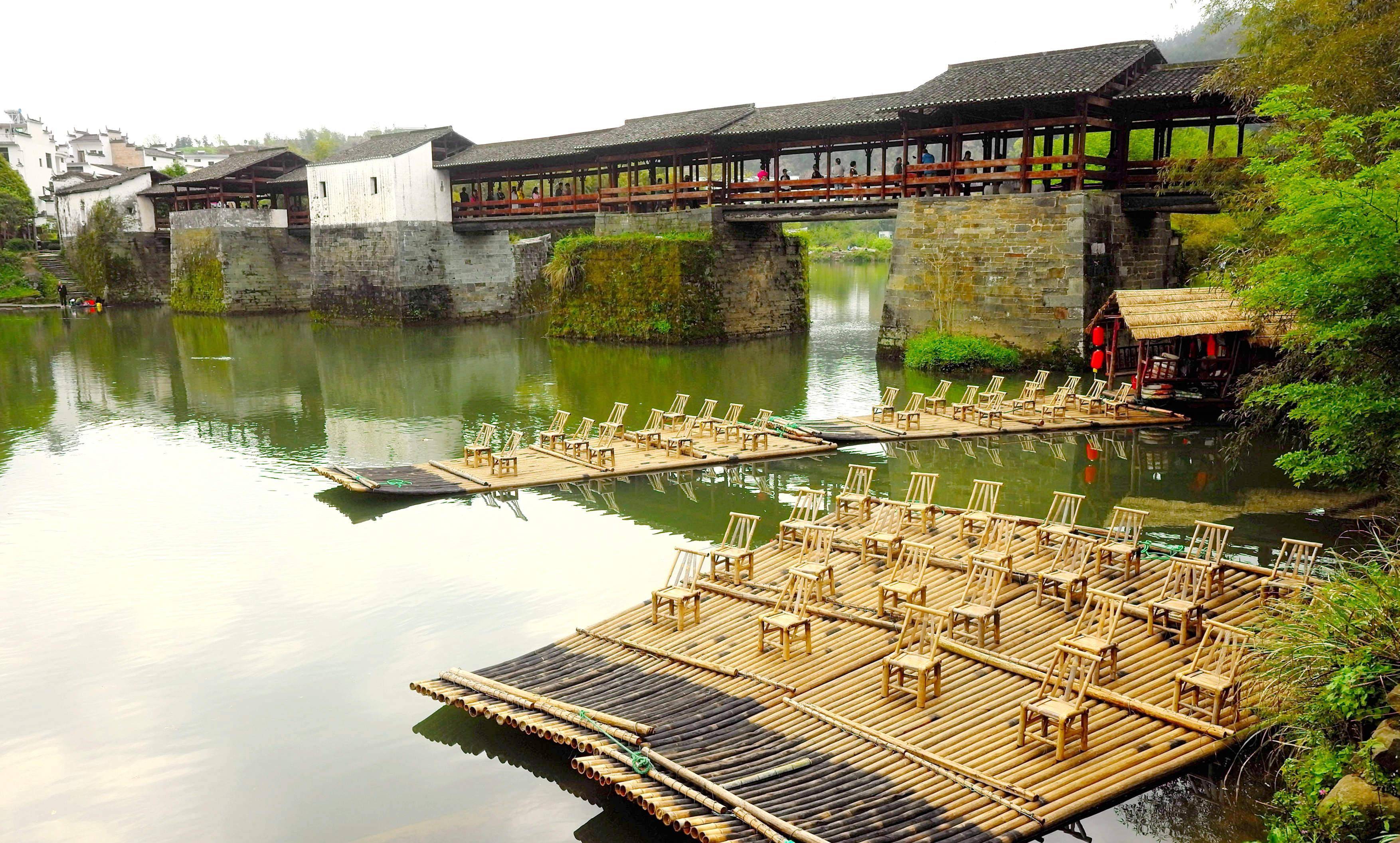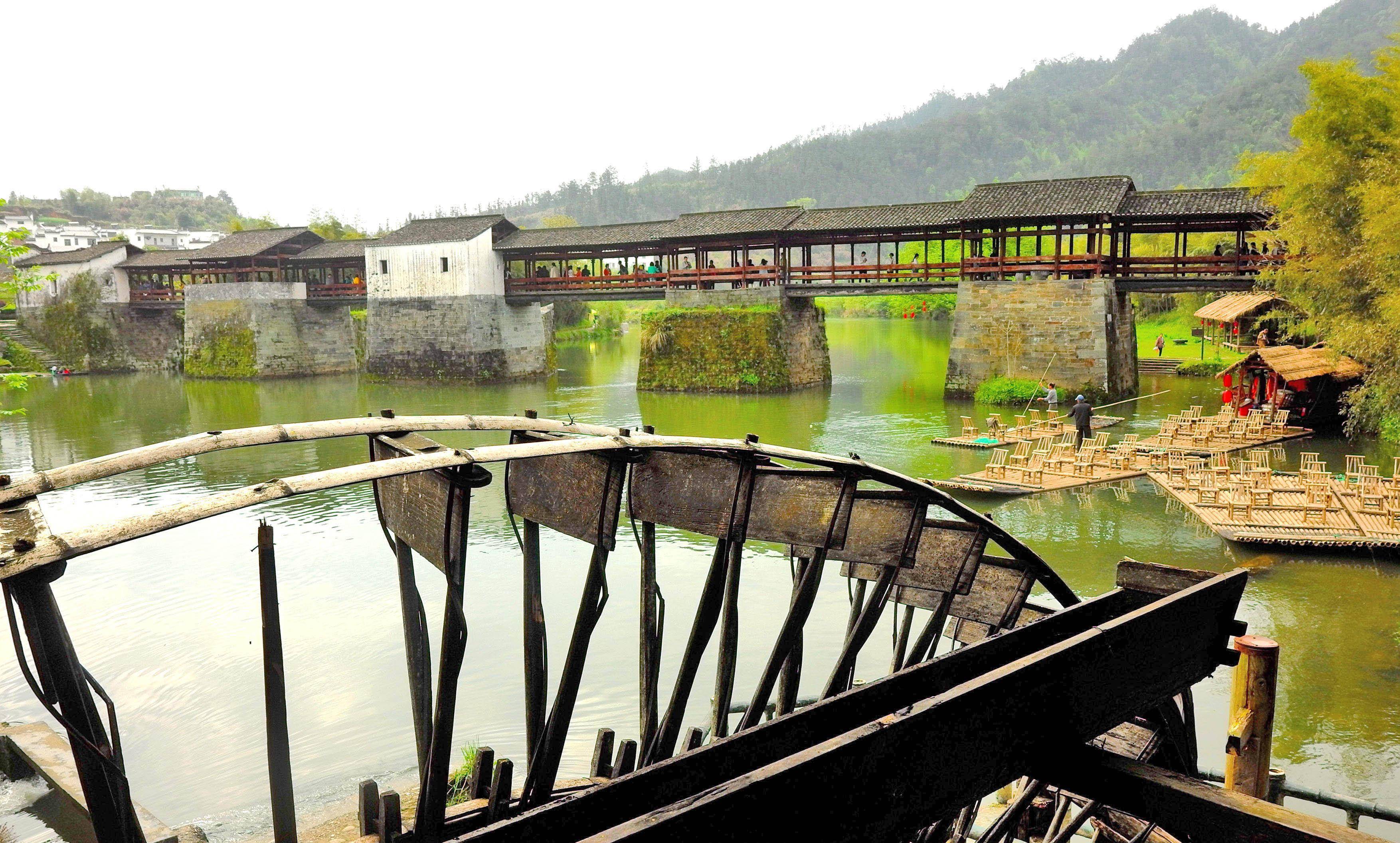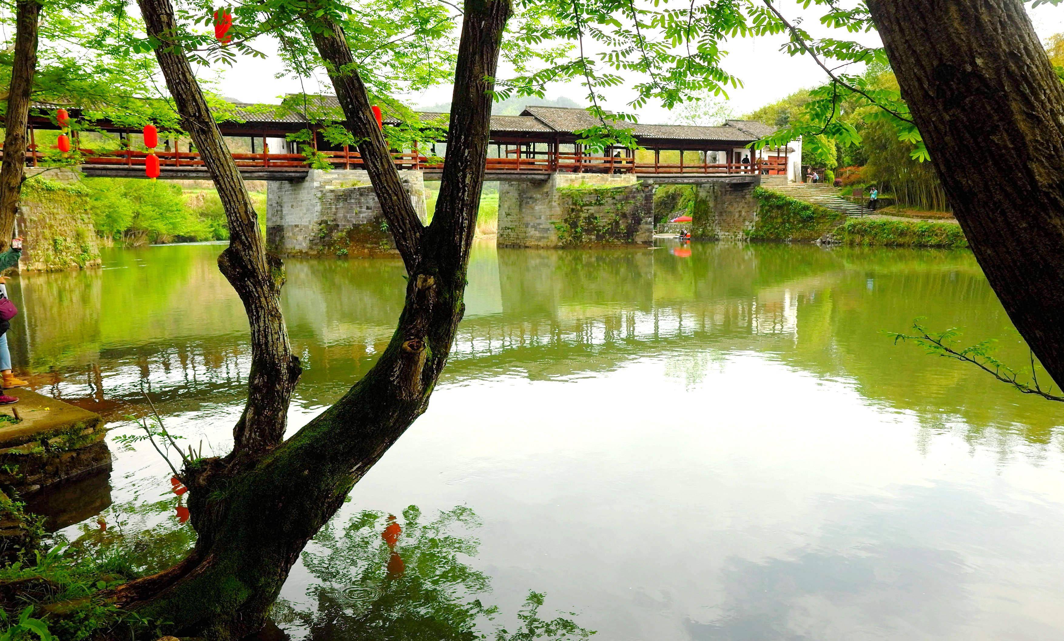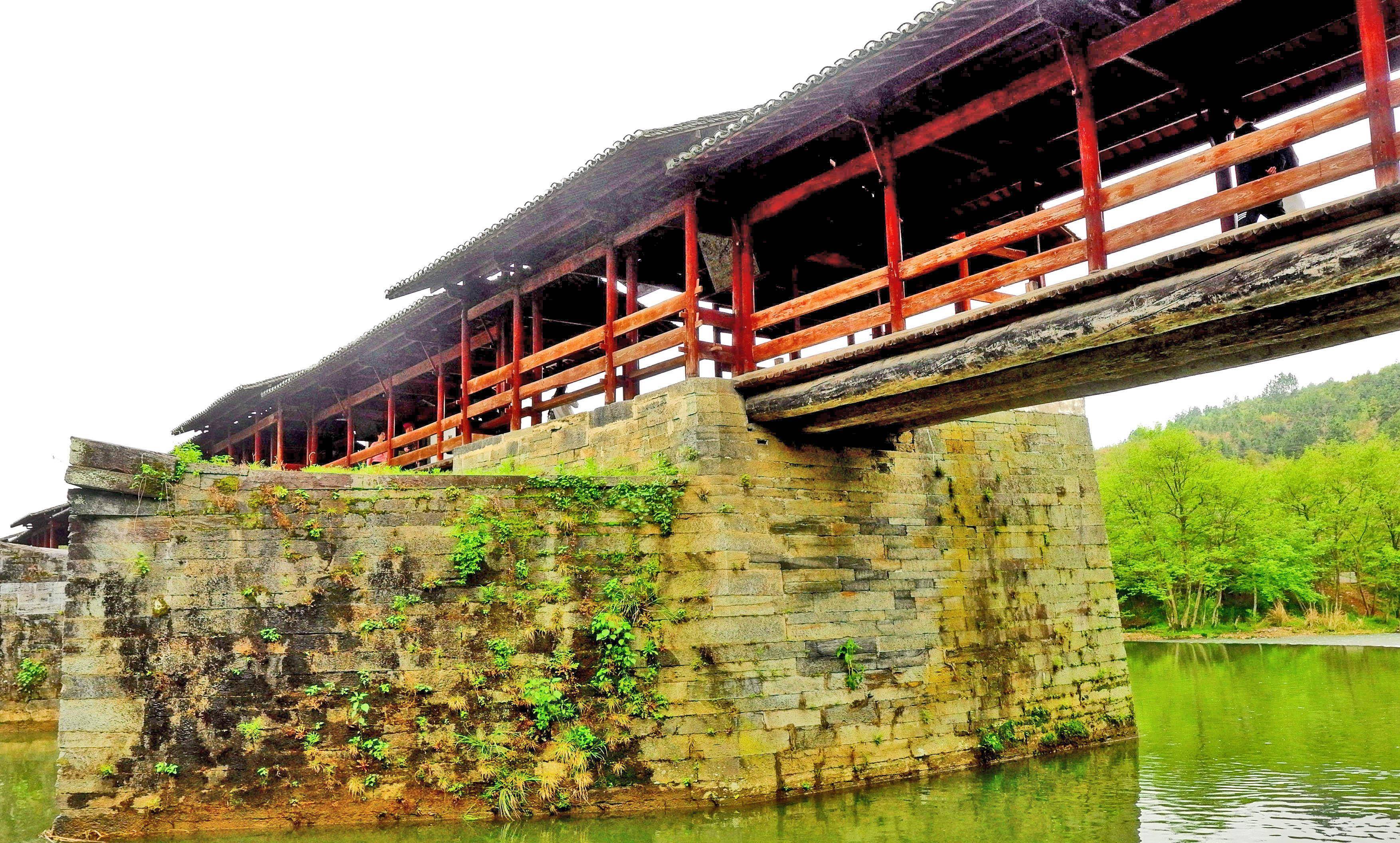 前几年去婺源,第三天一早去彩虹桥。桥在清华镇边上,这是婺源有名的一座廊桥,据说是古徽州最古老、最长的廊桥,被许多人誉为“中国最美的廊桥之一”。桥建于南宋,有800多年的历史啦,全长140米,六亭五桥是其特点。因唐诗“两水夹明镜,双桥落彩虹”而名。传说,桥落成之日,有彩虹出现。
