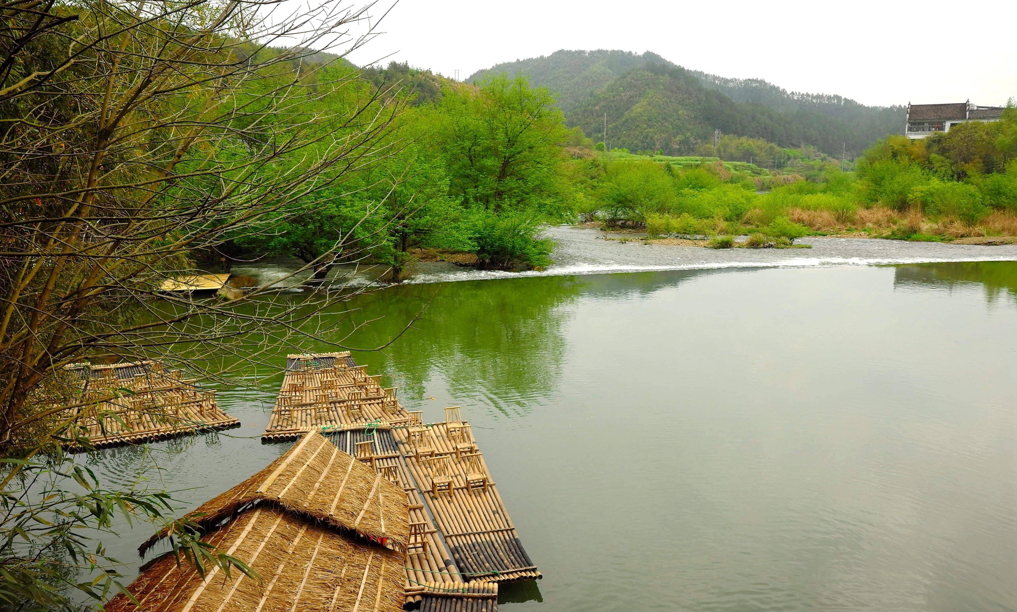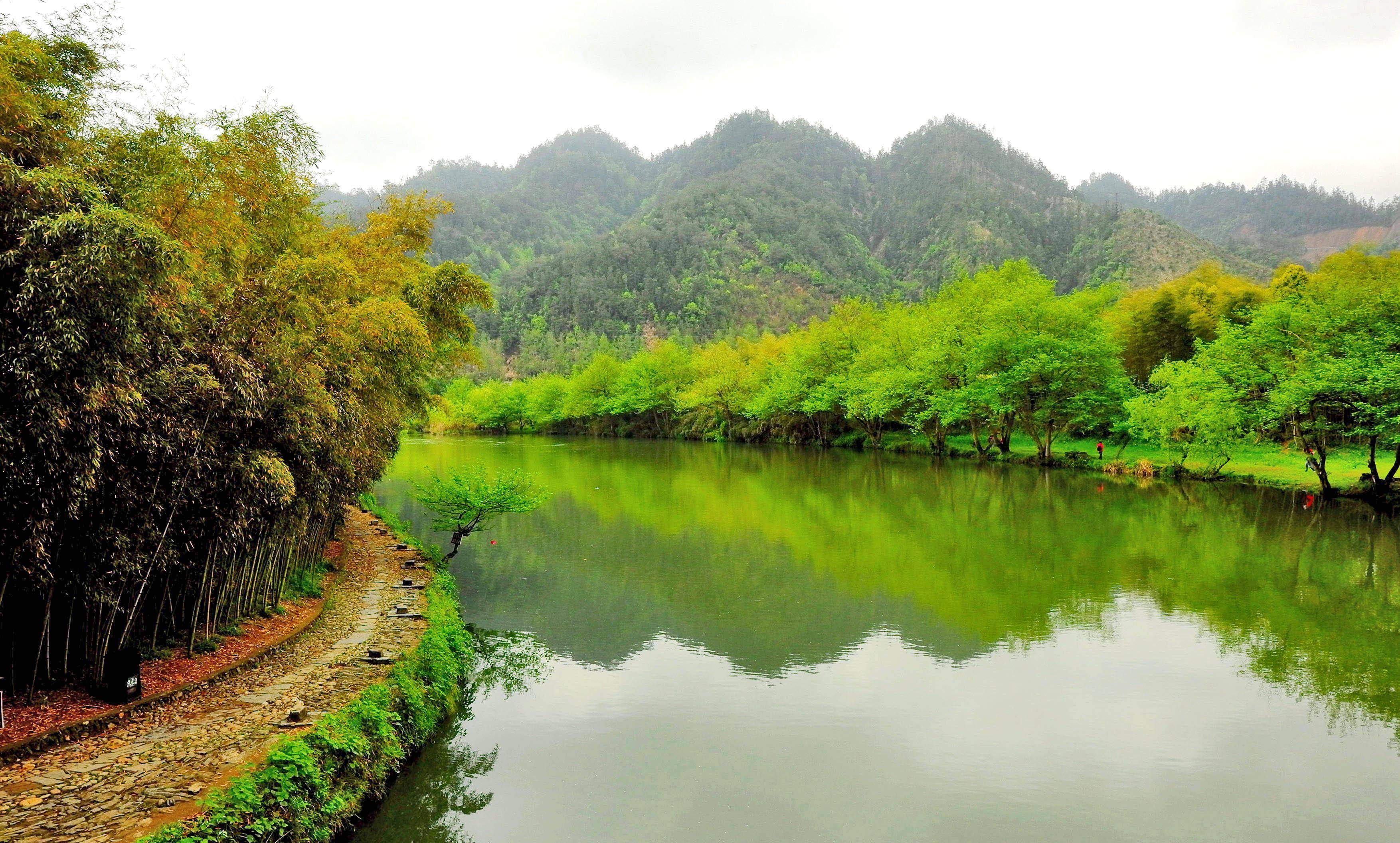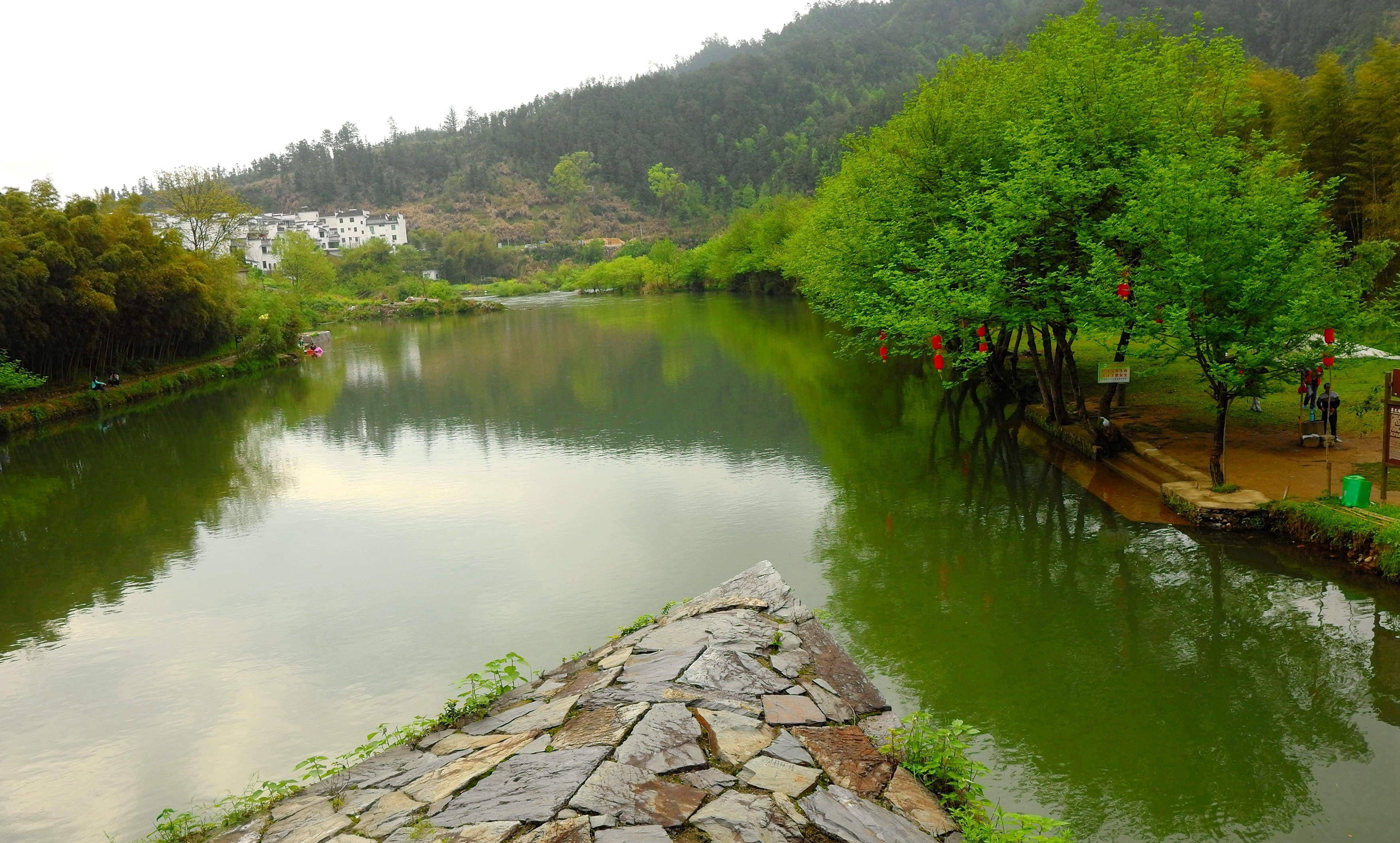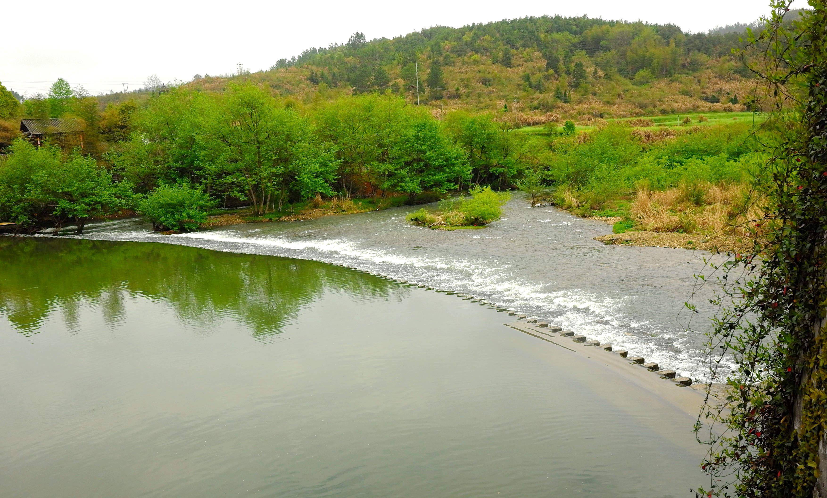 溪流如带,青山如画。
