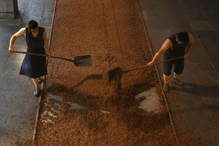 手工班酿造车间,工人正在出甄降温,储永志/摄