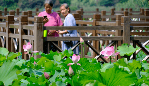 据介绍,南湖九曲桥荷花池荷花种植面积约2200㎡,种植有2000多株荷花,以粉花、红花、白花为主;睡莲种植品种有香水莲、蓝花睡莲、王莲,其中香水莲约种植450株,以粉红色、黄色、白色为主;蓝花睡莲约种植400株;王莲约种植20株。