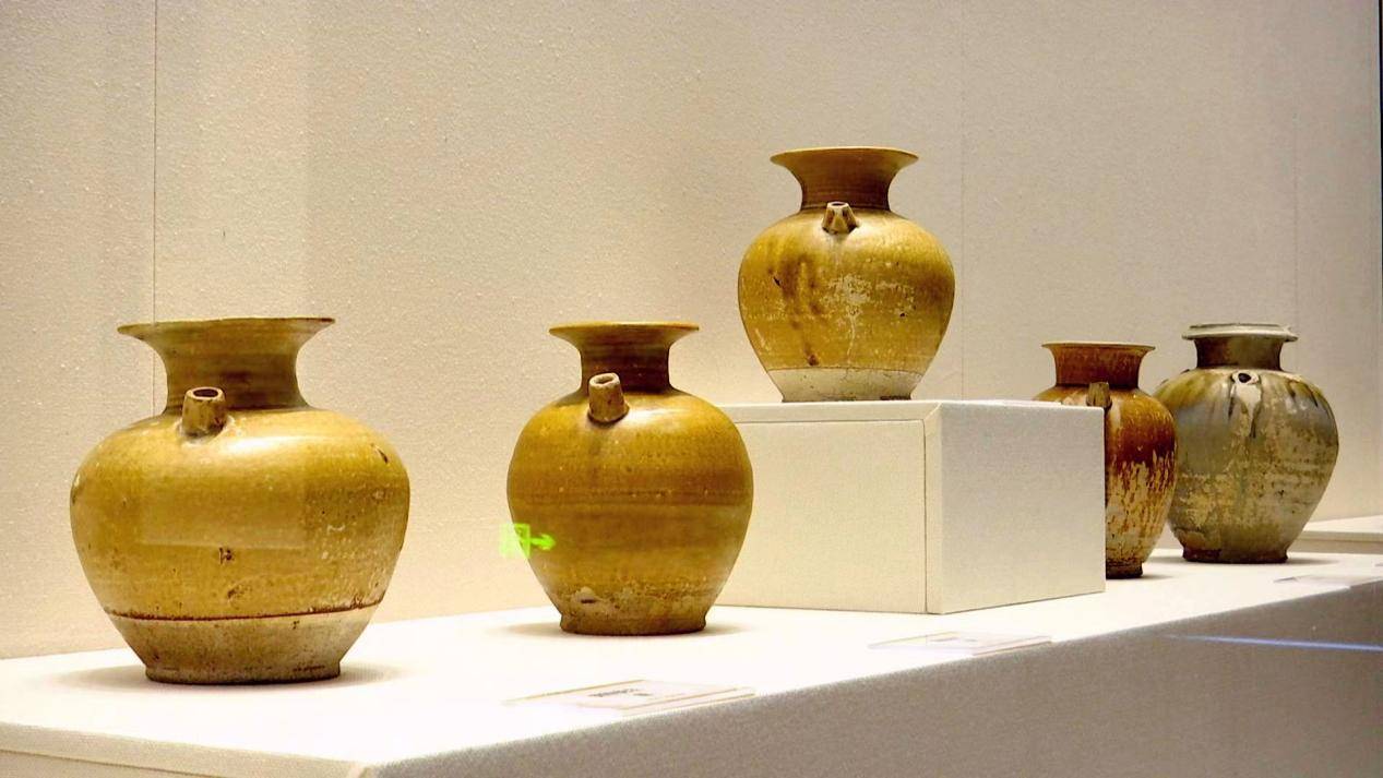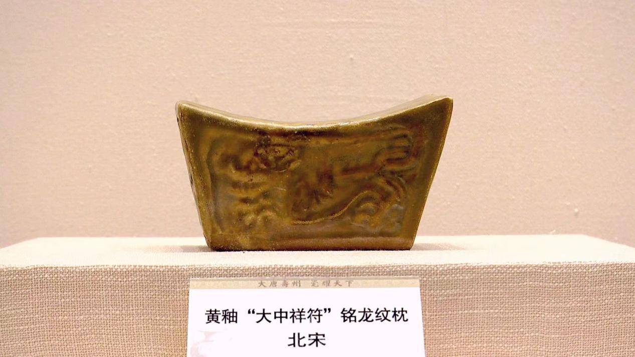 这次展览荟萃寿州窑瓷器140件(套),共十大类,包括有壶、罐、盏、钵、碗、枕、注、砚等,其中有代表性的有隋代的四系青釉盘口壶、唐代的黄釉注子等,其中最为特殊的是两件宋代的“大中祥符”的黄釉瓷枕。