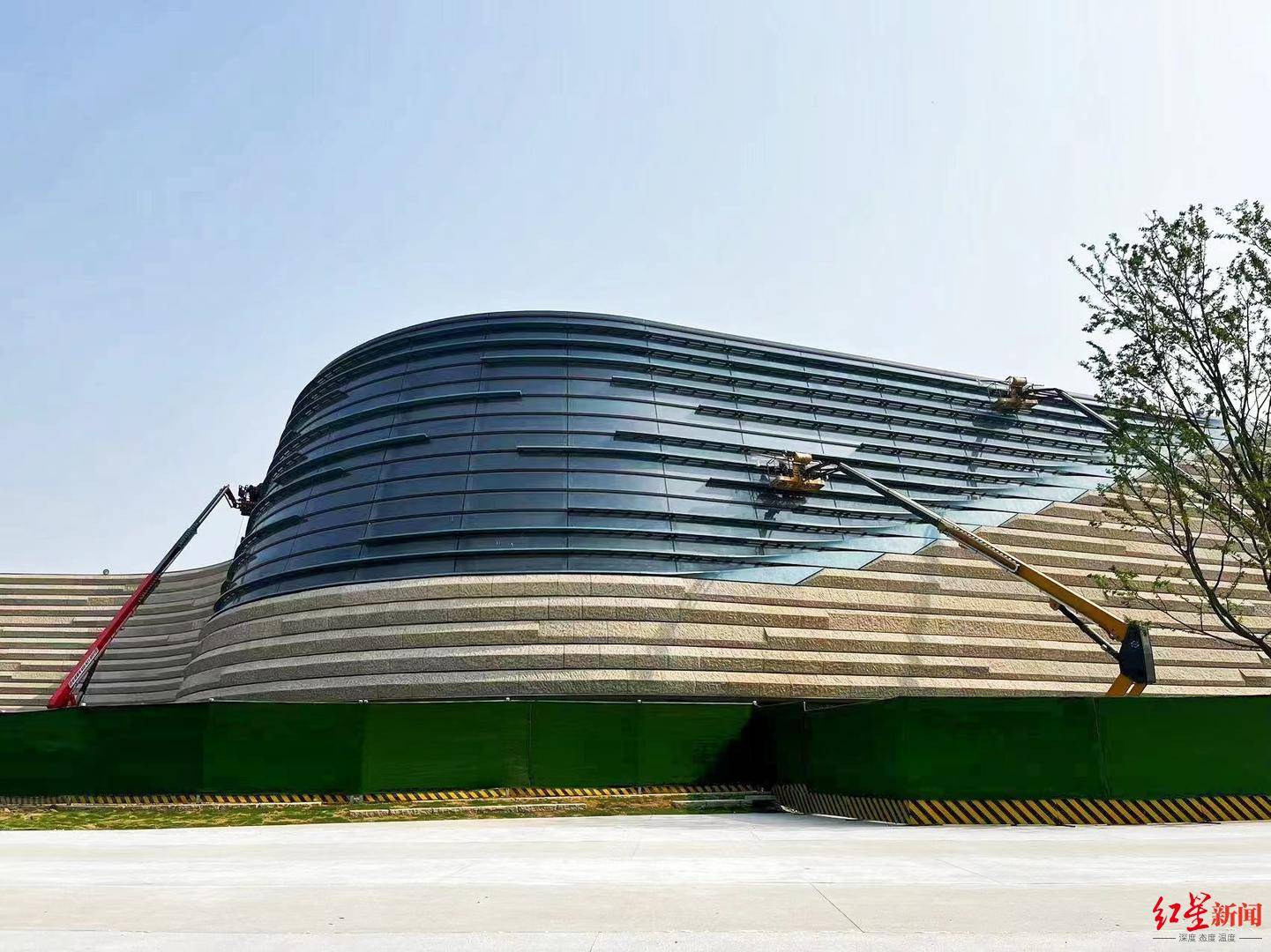 “目前,项目进入收尾阶段,室外的幕墙、屋面以及新馆周边的绿植种植都已经基本完成,现在主要抢抓的就是室内装饰装修、展陈和室外总平施工。”据项目施工方中建八局项目负责人李文博介绍,目前三星堆博物馆新馆项目建设正处于最后的冲刺阶段,现场施工人员达800余人,通过“轮班倒”进行24小时不停工作业,确保“7·28”顺利开馆。