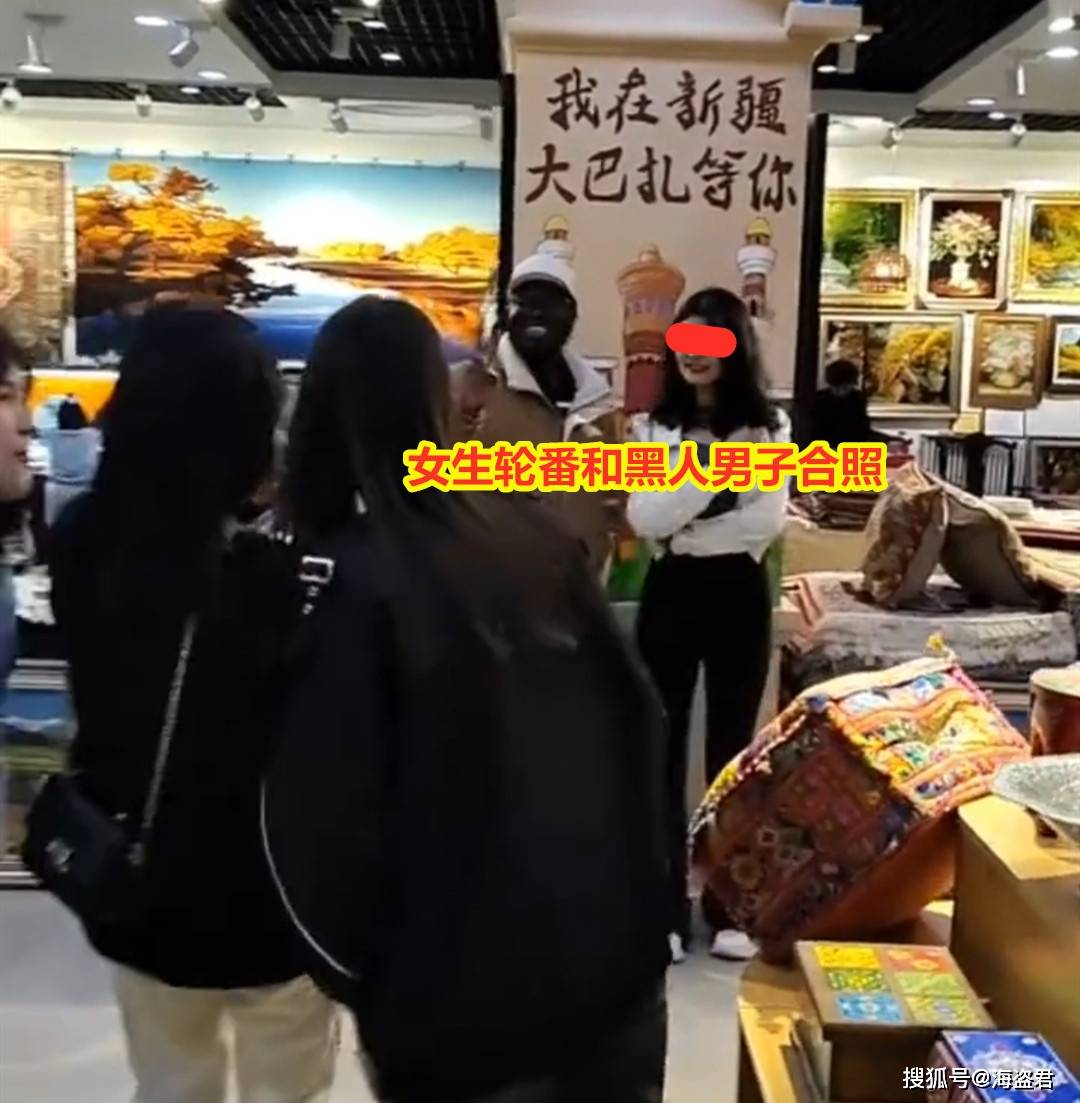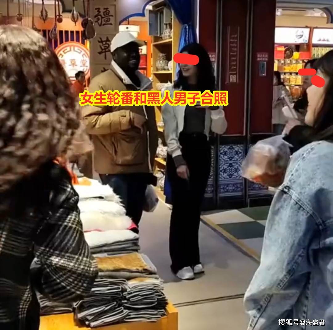 因此当这群女生看到商店里有一名黑人男子时,都忍不住上前请求合照,有了黑人男子的加入,她们的旅游照片更加独特,更加具有异域风情,更能脱颖而出。