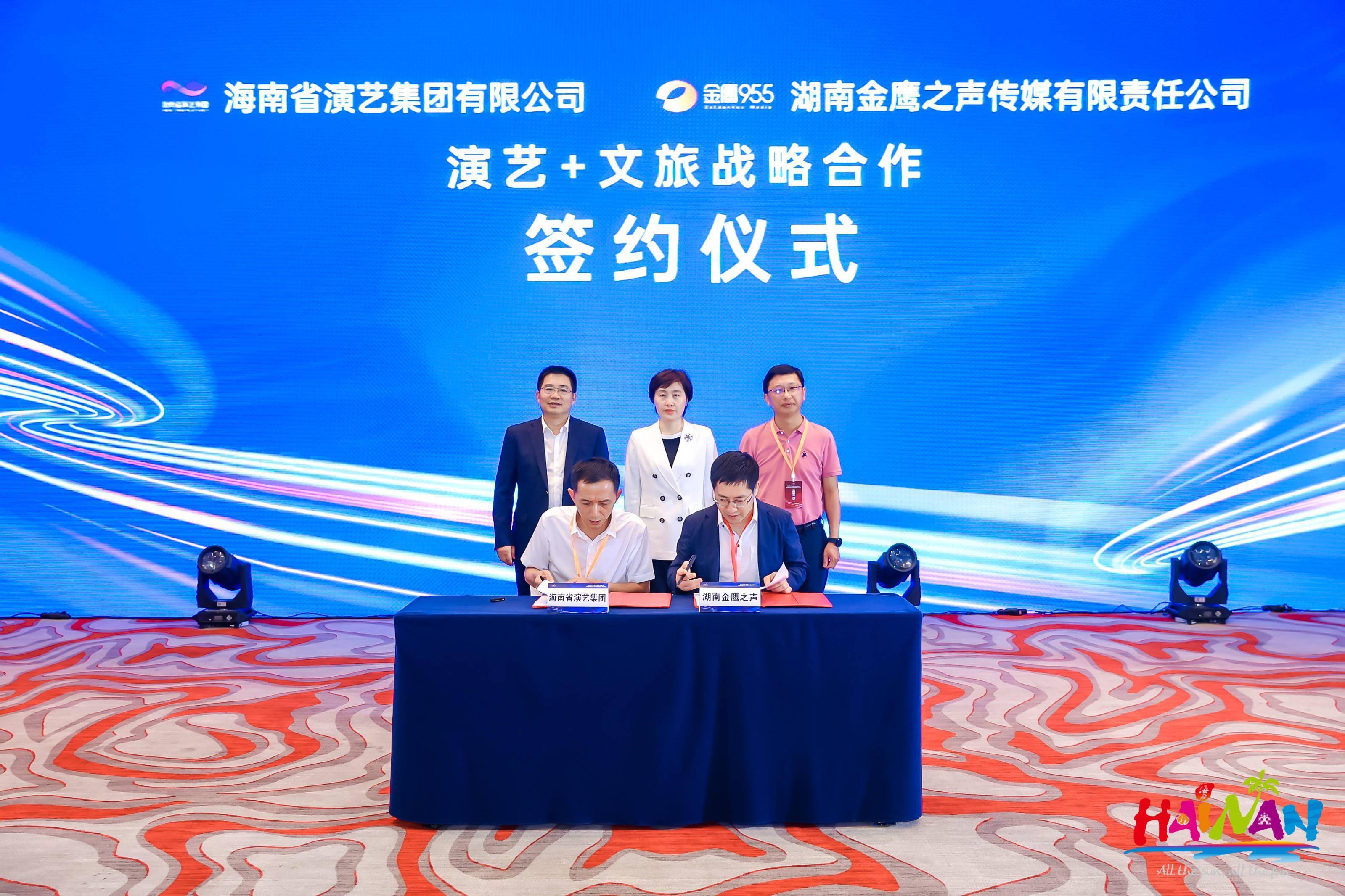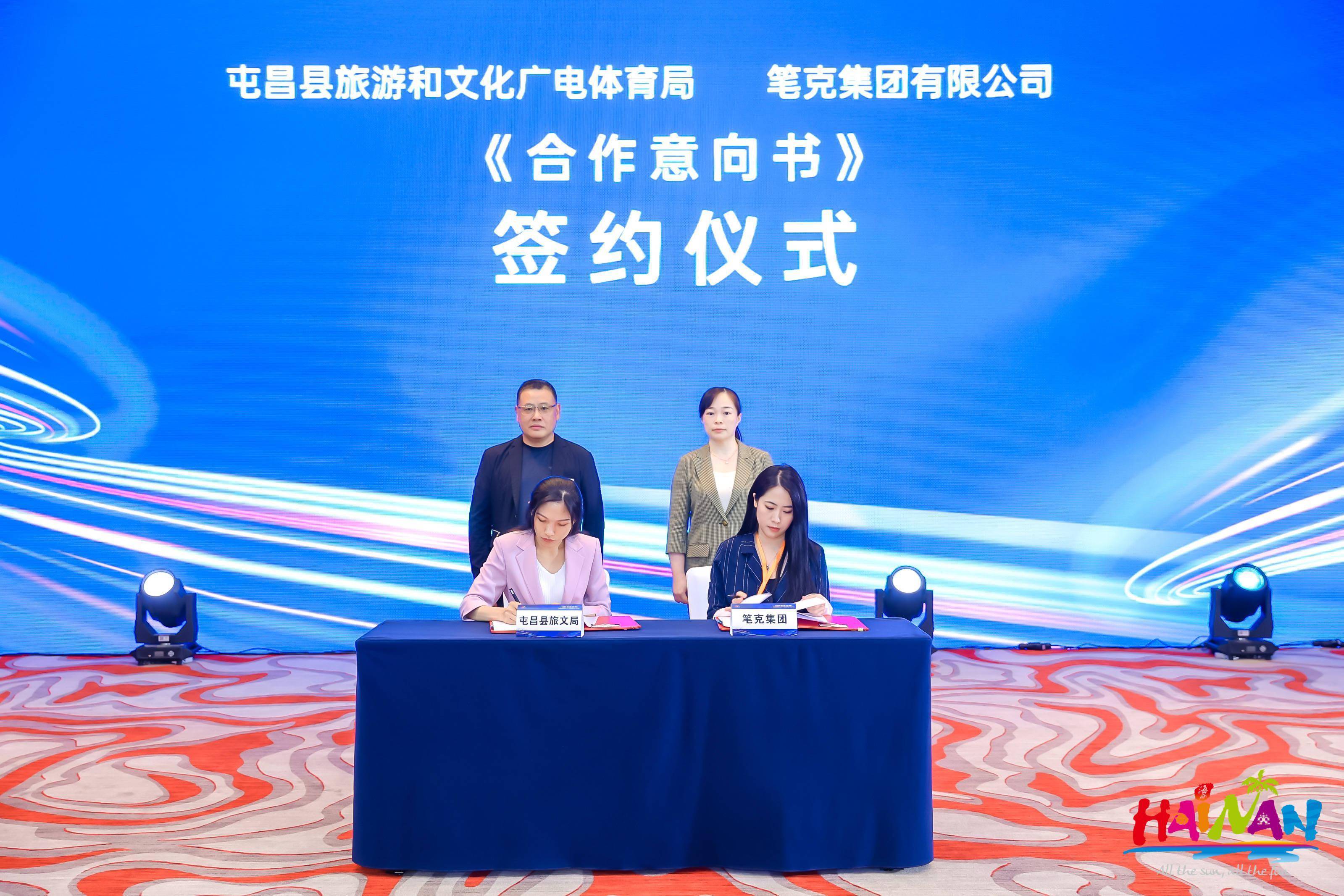 现场,海南省演艺集团与湖南金鹰之声传媒有限责任公司进行了演艺+文旅战略合作签约仪式,屯昌县旅游和文化广电体育局和笔克集团有限公司进行了《合作意向书》签约仪式。未来,双方凭借精诚合作、互惠共赢的理念,携手前进,优势互补,资源共享,共谋发展。