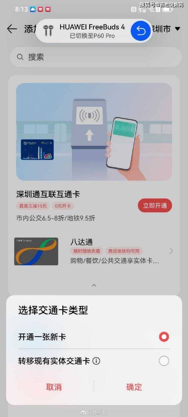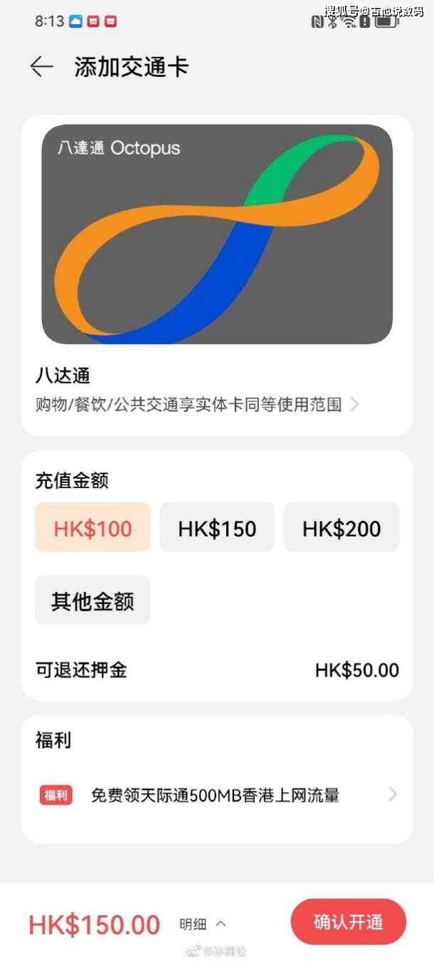 开卡路径是:1.首先打开华为钱包App;2.首页搜索“八达通”;3.点击“添加”;4.开通一张新卡(如果有实体卡的朋友可以选择转移现有实体交通卡);5、按步骤完成开卡/吸卡指引即可。