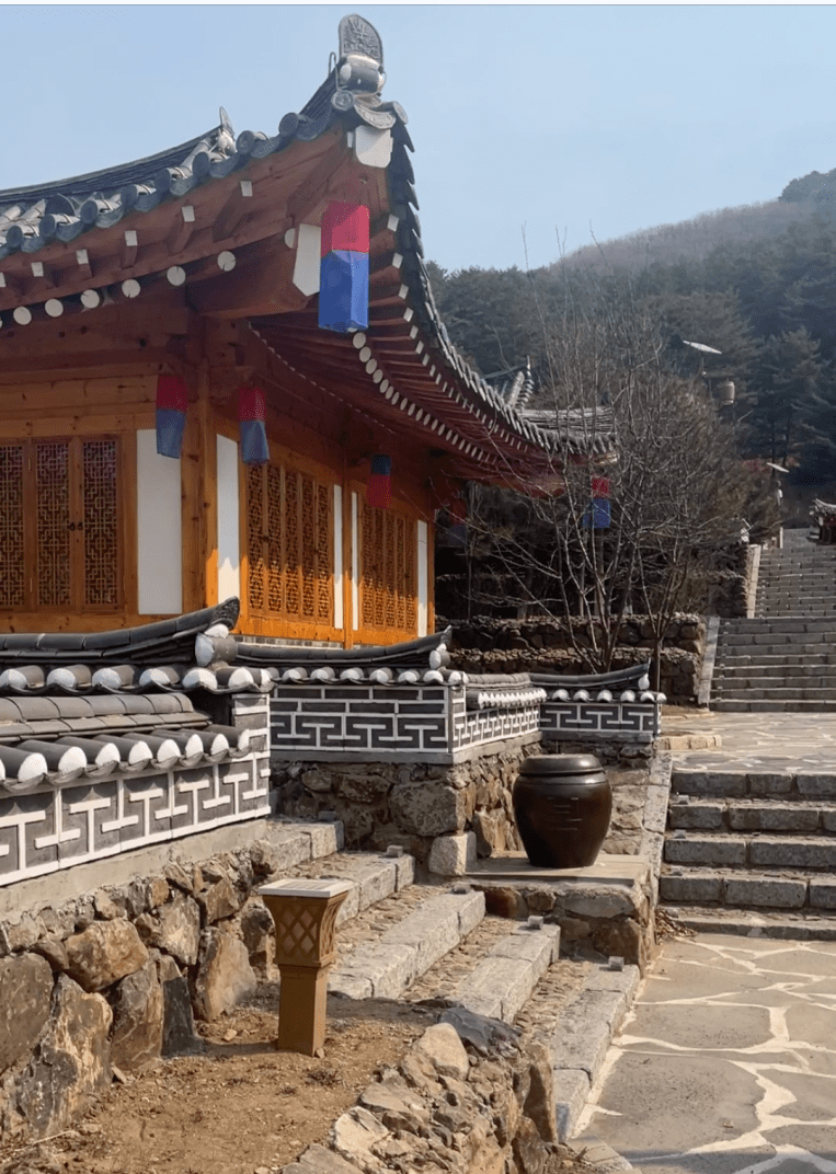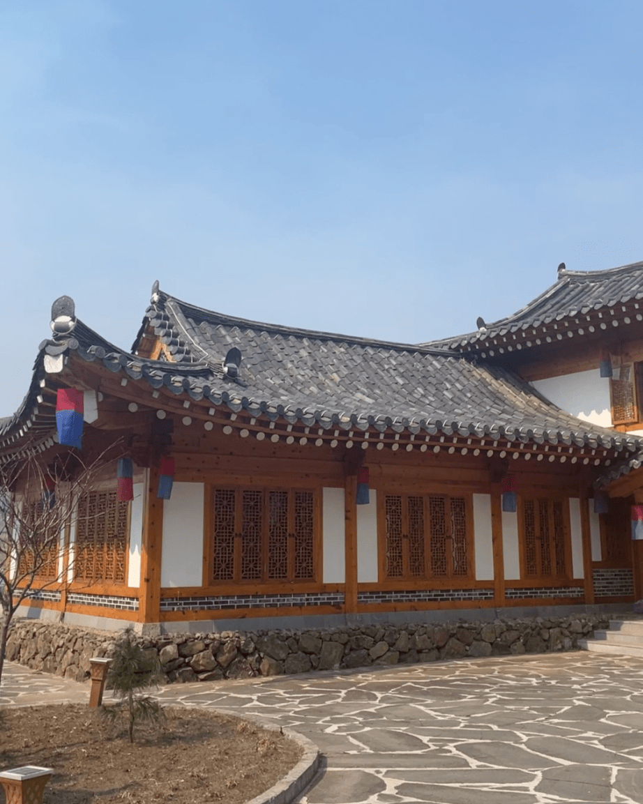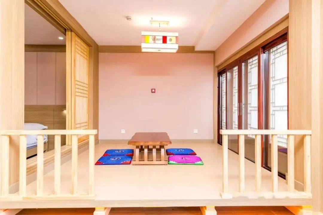 朝鲜族的传统民宿多为平房,建筑外观线条舒展 ,屋脊中间平缓,两端翘起,房檐很长,窗户设计以实木为主,木质的门窗,彰显出人与自然和谐统一的美感。内部是特色鲜明的炕大地小格局,配以伽倻琴,象帽,扇子,仙鹤挂画等装饰物品加以点缀,七彩缎面的床帷,以及朝鲜族经典老物件,让浓浓的民族风情扑面而来。