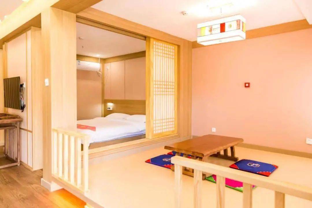 民宿负责人刘女士:这里共有40多间客房,装修风格多种多样,打造多国风情,其中朝鲜族风格的房间最为抢手, 保留了传统朝鲜族的住宿习惯——土炕的格局,但是我们把土炕改良成了电加热的榻榻米。这种形式非常受游客喜爱,因为可以切身的让他们体验到朝鲜族风情。