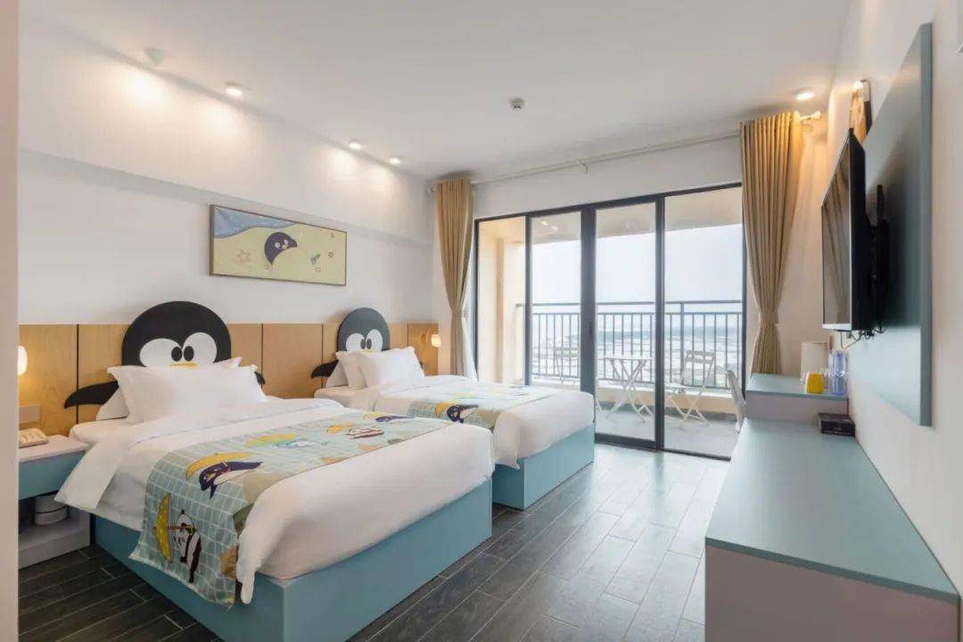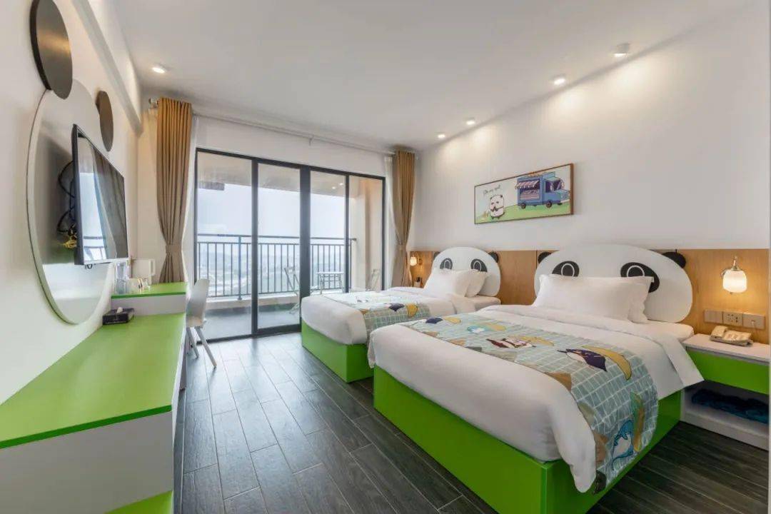 四大萌趣主题(驴小玩、熊猫、企鹅、海豚)的设计元素童心满满,很受家庭亲子出游的喜欢。充满童趣的抱枕和床品,给小朋友营造了舒适又童趣的空间。