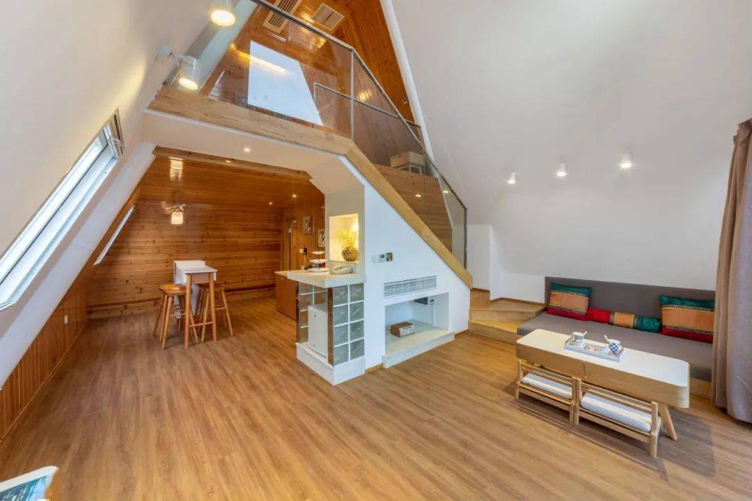 独特的金字塔木质结构造型,复式设计,保证了极大的私密性。