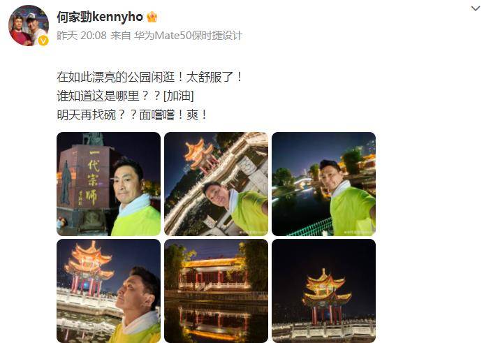 知名演员@何家勁kennyho兴奋发博并发布抖音视频直呼“在如此漂亮的公园闲逛!太舒服了!”
