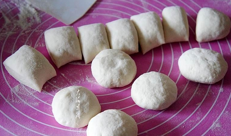 9、将面团揉成长条,均匀的分成若干等分,揉成圆面剂子。