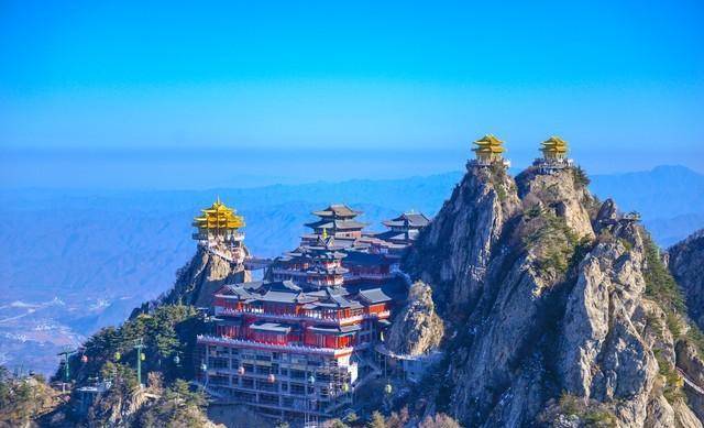 老君山以峰秀林立、静幽洞奇著称,海拔超过2000米的山顶上,是一座绚丽辉煌的云顶天宫。翻滚的云海直扑天际,数百座山峰若隐若现,犹如深处云顶,这里的宫殿远远看去,气势恢宏,这里的台阶直扎云霄。