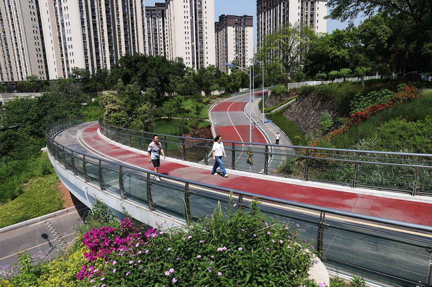 人民网重庆5月19日电 (记者冯文彦)重庆市大渡口区重钢崖线山城步道是重庆市政府规划的60条特色山城步道之一,全长约22公里。步道位于长江岸边高差约200米的山崖上,将骑行、步行贯通于一体,并将重钢厂区旧址、重庆工业博物馆、义渡古镇、义渡公园等人文景点串联起来。目前,重钢崖线山城步道一期、二期均已建成投用,成为了山城的一道人文景观和市民休闲健身、打卡拍照的好去处。