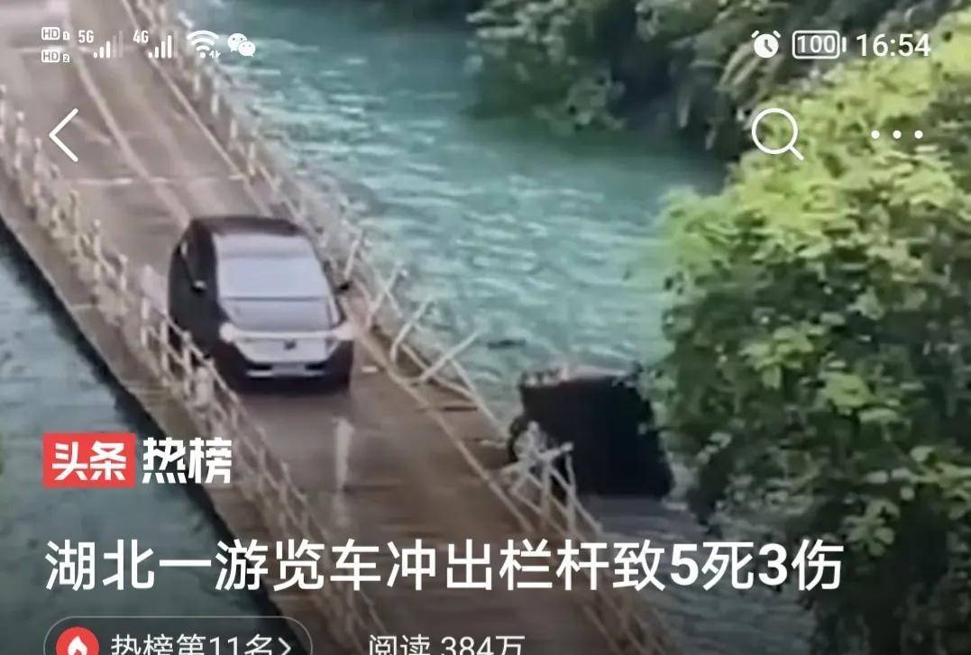 此处也是一处网红打卡热门桥,一商务车不幸撞到栏杆落入水中,实载8人,3人被救起,5人死亡。