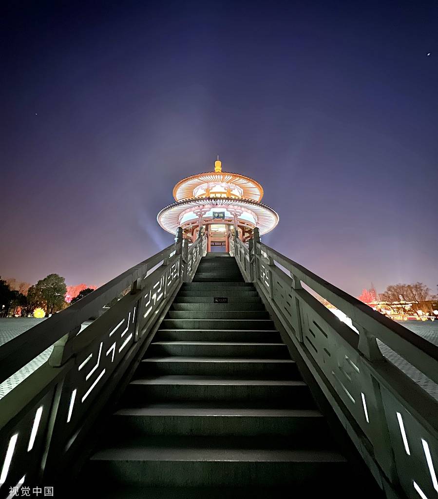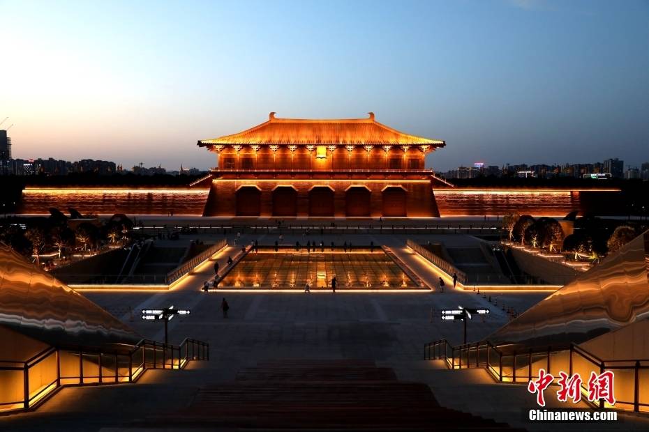 5月18日,陕西西安大明宫国家遗址公园丹凤门夜景如画。