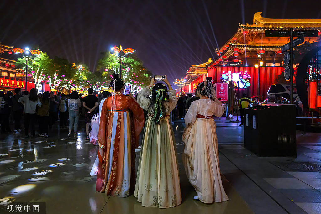 2023年4月20日,西安,大唐不夜城步行街游人如织。