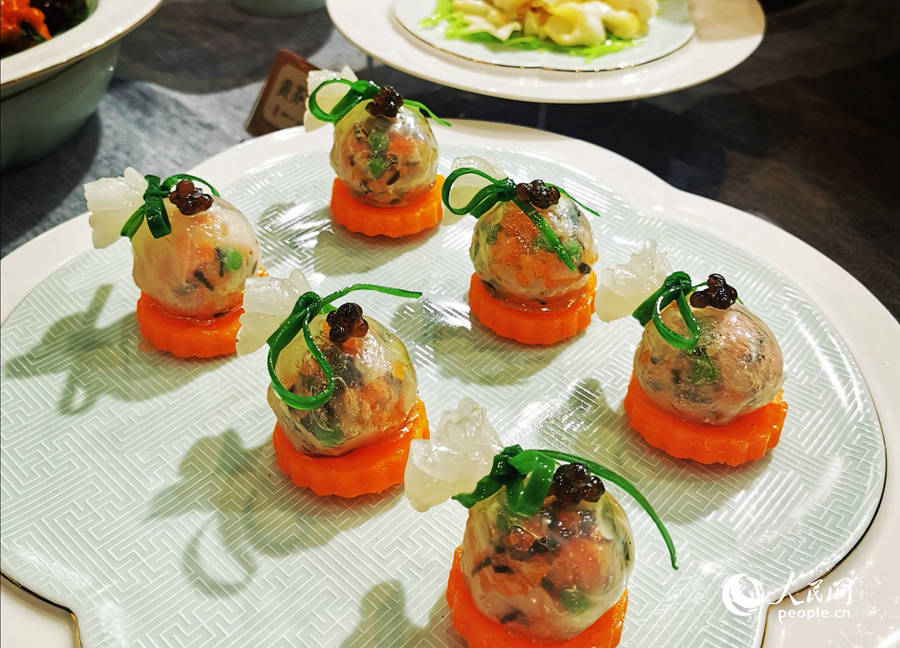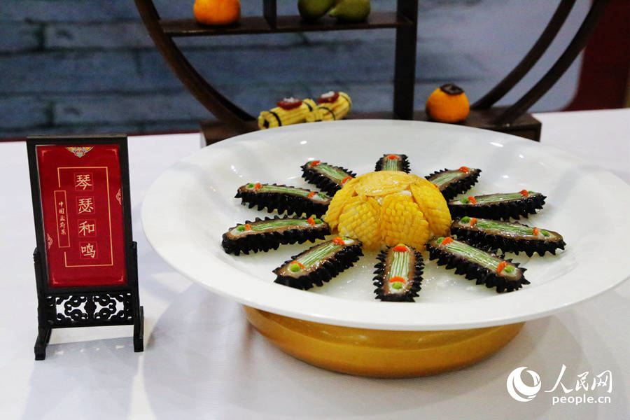 孟府是中国重要的儒家府第之一,孟府宴礼仪庄重、规格严谨,食物搭配独具特色。图为孟府宴菜品“琴瑟和鸣”。人民网 叶青卿摄