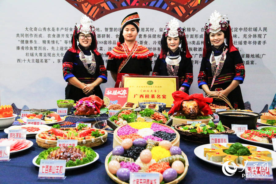 来自广西大化瑶族自治县的“壮瑶大席”五彩斑斓,秀色可餐,主打“健康养生、精美情礼”。