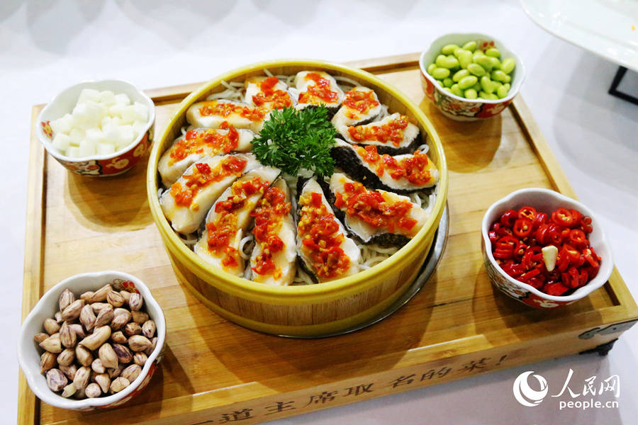 知音故里白云黄鹤,物华天宝鱼米之乡。长江万里的楚地孕育了“两湖熟、天下足”的荆楚美食。图为楚菜“锦绣鱼鲜大团圆”。人民网 叶青卿摄