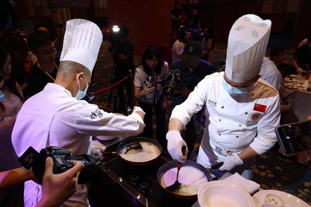 此外,活动还进行“凤城炒牛奶”表演以及“起鲮鱼”刀工技艺表演。王福坚、吴南驹、何定文、何锦标、黄剑雄、孙永康、李耀苏、颜景瑞、高国坚、罗培枝十位顺德名厨以精妙的火候控制和独到的炒法,让牛奶从液态奇妙地变成凝固状,凝而不固、软滑鲜香,并充分保持牛奶的香嫩软滑特色,精湛的技艺令在场嘉宾连连称赞。