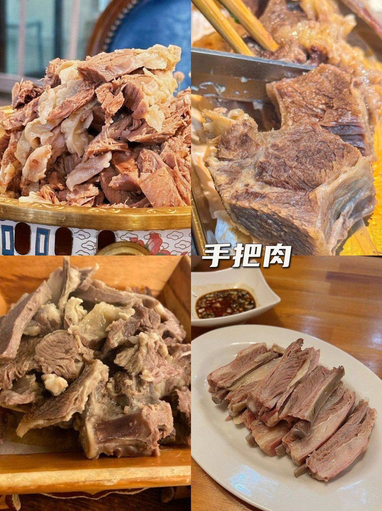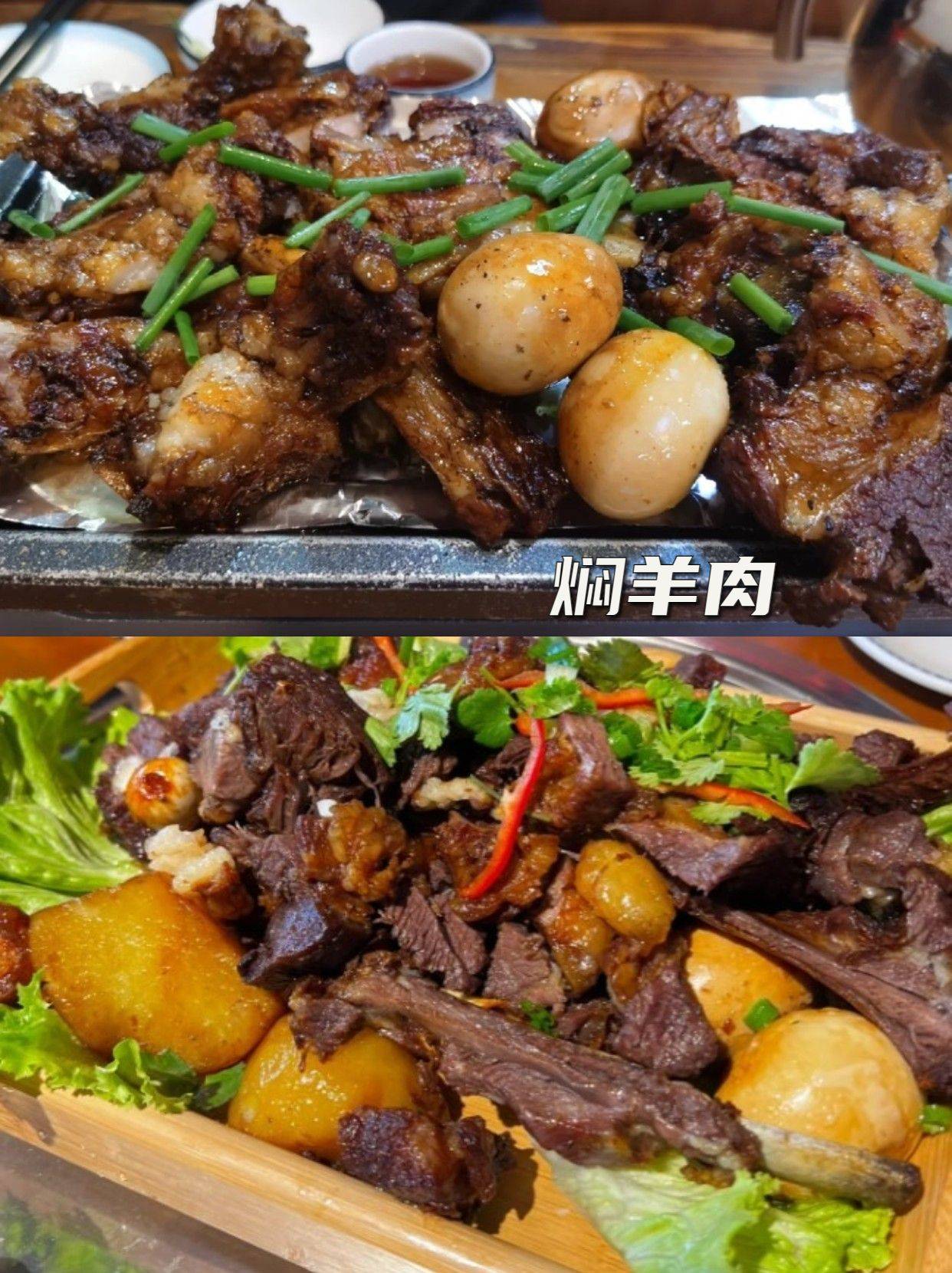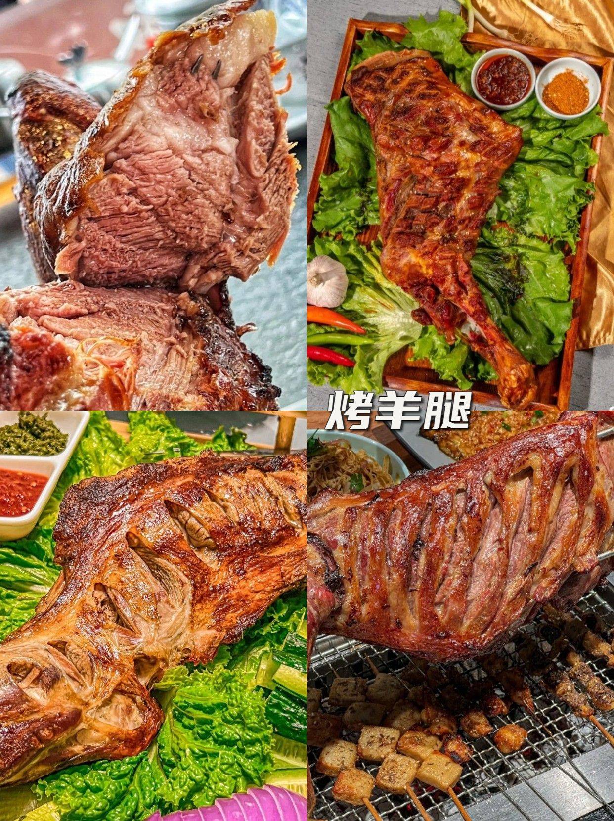 烤羊腿:蒙A烤羊腿、怡德和牧家游,内蒙的烤羊腿是真正的色香味俱全!看着就让人流口水,外面酥脆鲜香,内里软嫩香醇,一撕开香气全都溢了出来,没有一点膻味,吃着特别过瘾!