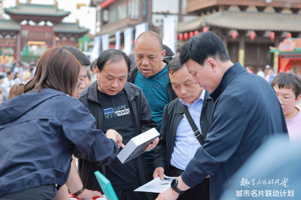 活动现场,各地非遗产品的亮相吸引了众多游客的关注,在全国金牌导游张晓旭的带领下,近距离打卡11市城市名片非遗特色专区,感受山西人文魅力,为家乡实力圈粉。
