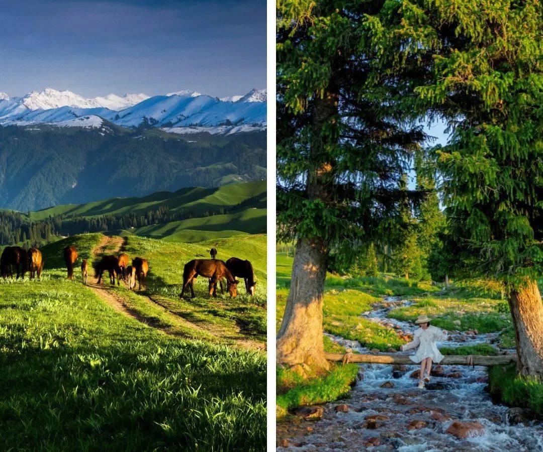 那拉提的空中草原永远不会让你失望! 木桥溪流非常出片!不容错过!空中草原沿途有 3个停车点,在6月底之前都能看到雪山,特别震撼!