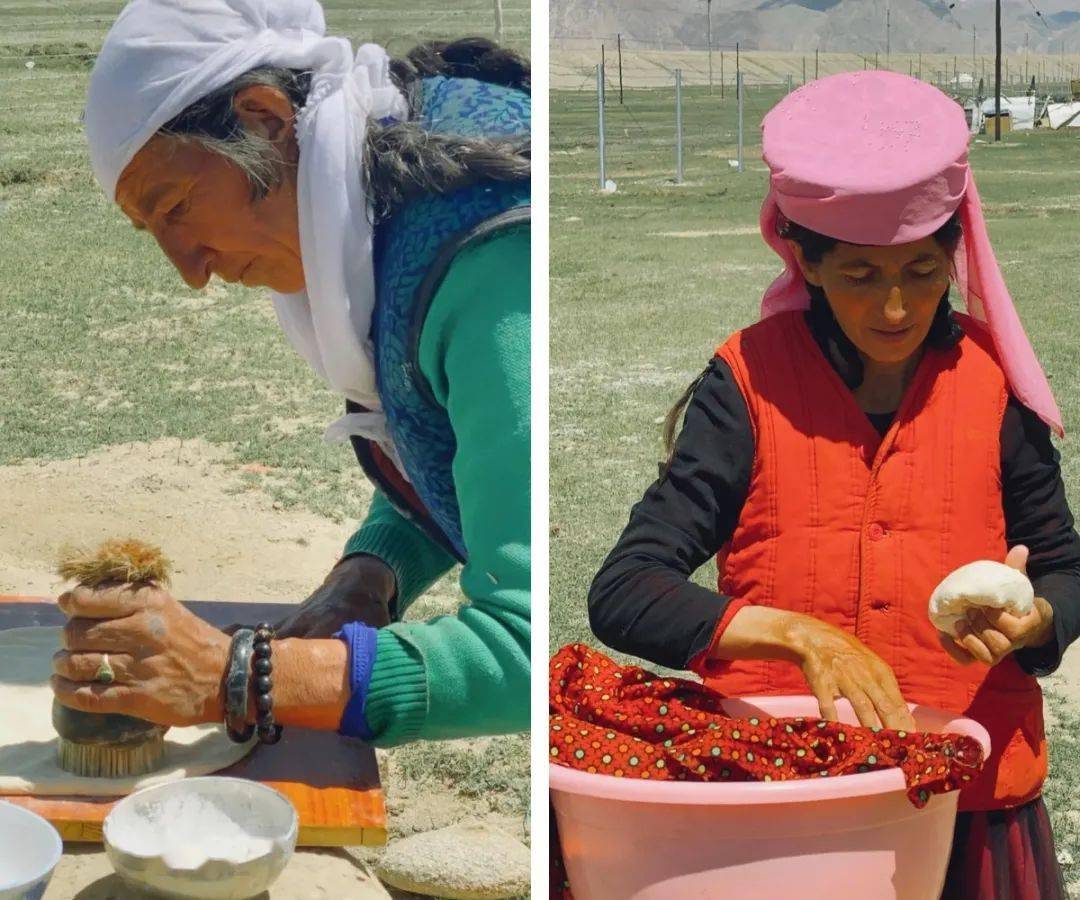 与当地牧民一起学习打馕 制作奶疙瘩