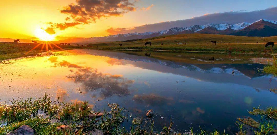 随后前往 《飞驰人生》同款拍摄地【 巴音布鲁克】(1.5H 61KM), 打卡“9个太阳”的日落奇观。这里地势平坦,水草丰茂,四周雪山环抱,开都河蜿蜒其中,形成 “九曲十八弯”的奇特景色。 风景如画,被众多游客称为“世外桃源”。