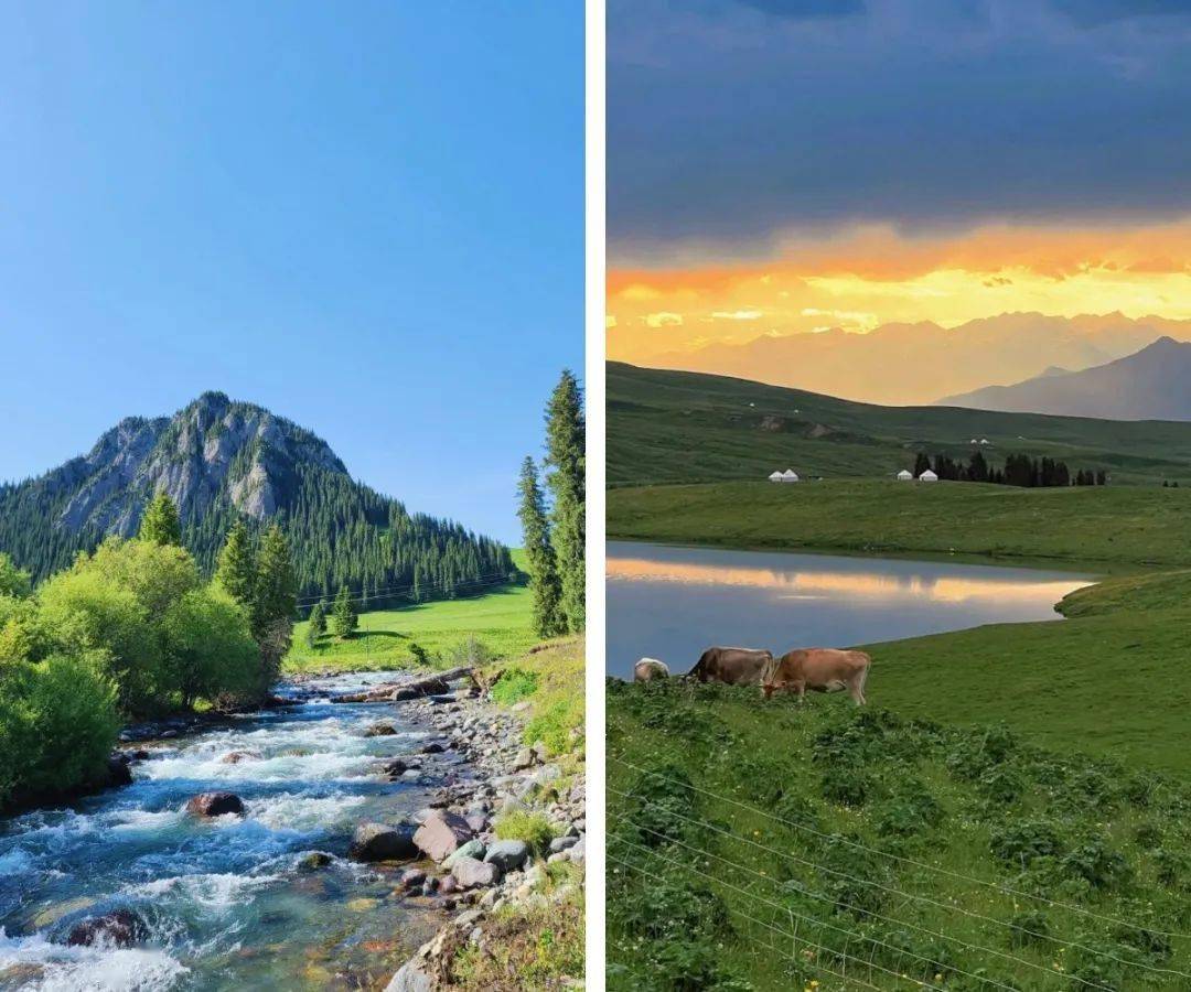 俗话说:"南疆看人文,北疆看风景”。北疆地域辽阔,一步一景,来一次你就会醉倒在它的绝美景色里!蓝天白云、雪山草原、河谷云杉、牛羊成群......千种美景,万种风情,美得不似人间!
