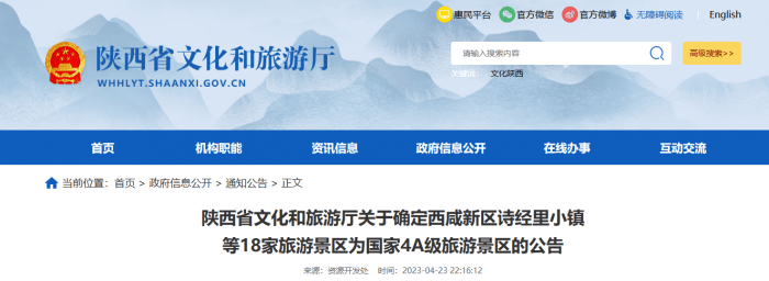 文化艺术网-文化艺术报讯(全媒体记者 刘青)近日,经有关市级旅游景区质量等级评定机构推荐,陕西省文化和旅游厅组织评定,确定18家旅游景区为国家4A级旅游景区以及3家旅游度假区为省级旅游度假区。