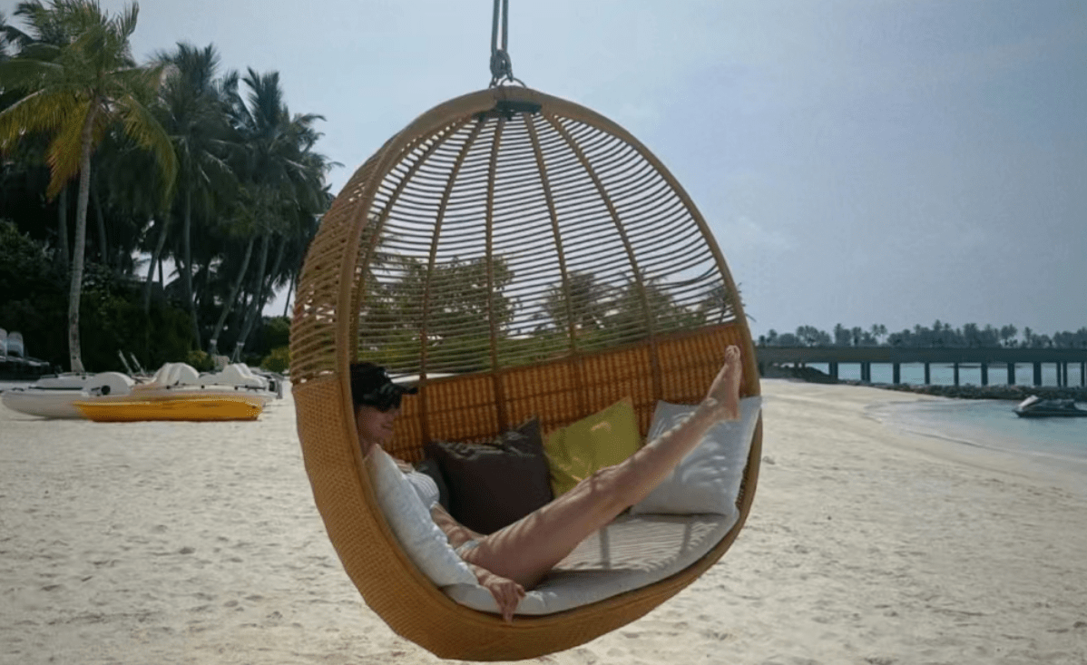 最后,袁姗姗还坐在秋千椅上凹造型,修长笔直的美腿羡煞旁人。在马尔代夫旅行的她心情好到飞起,不知道下一次的分享里,袁姗姗会不会再度给大家展示不一样的时尚美照呢,一起期待一下。