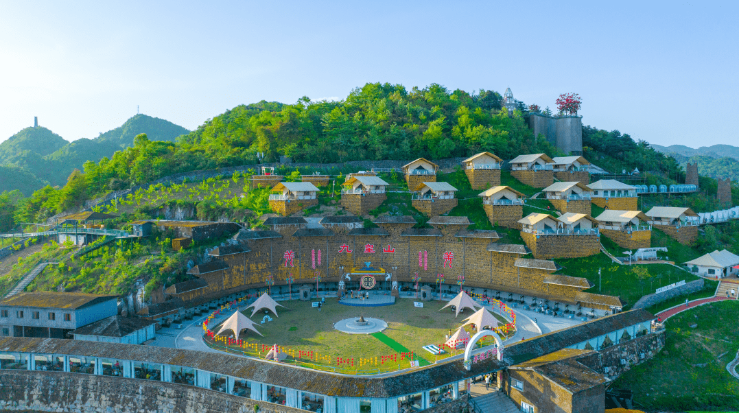 九皇山景区森林覆盖率极高,是名副其实的纯天然森林氧吧,绿植茂密,野趣盎然。游客们可以徒步尔玛古道、天梯等自然景点,不仅能够呼吸到自然的清新空气,还能锻炼身体,舒心又惬意。