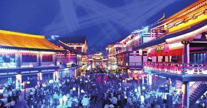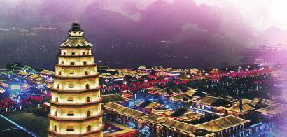 定州塔巍峨耸立,古城街区流光溢彩、夜景如画。