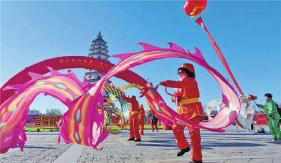 定州塔广场上的舞龙表演