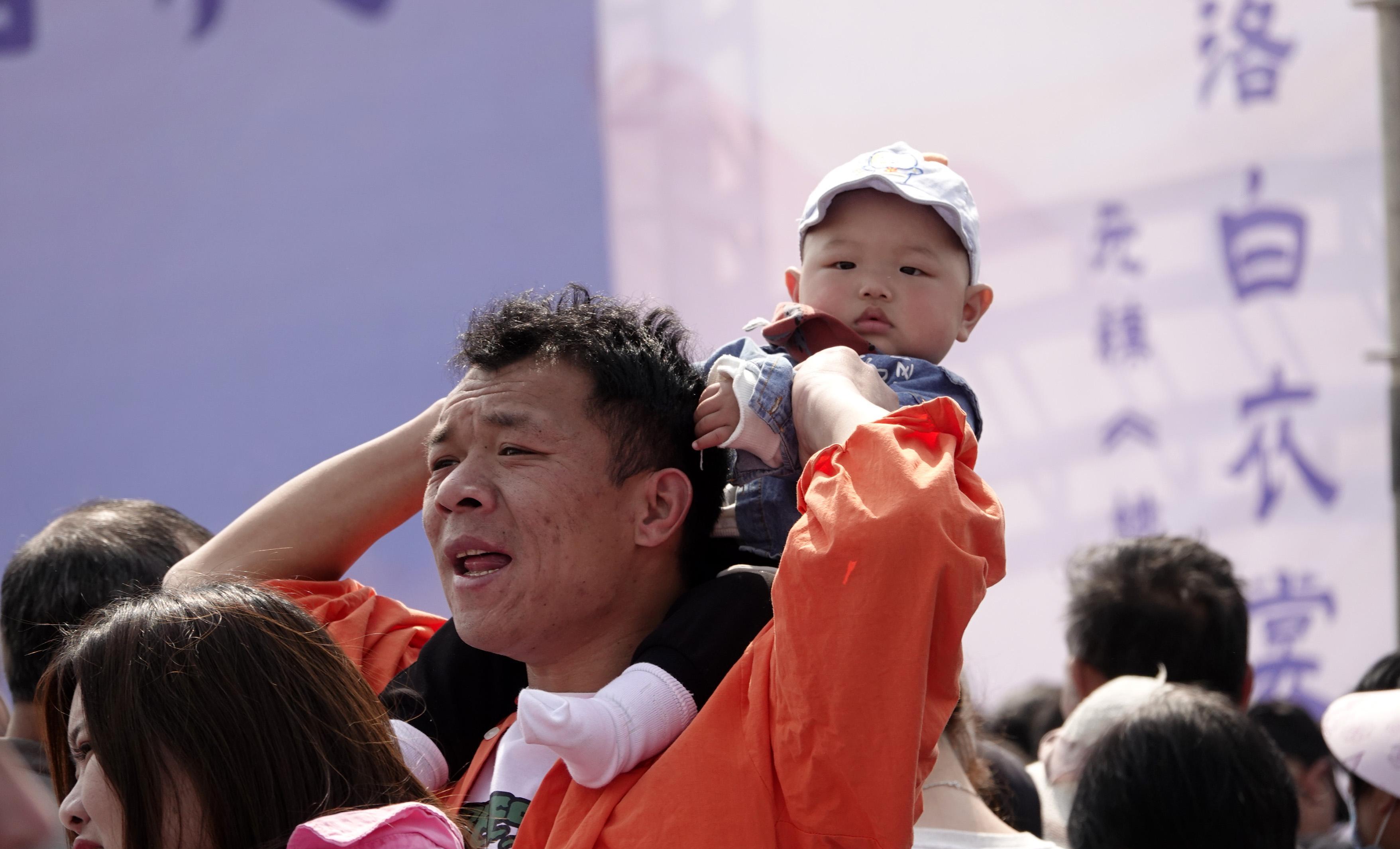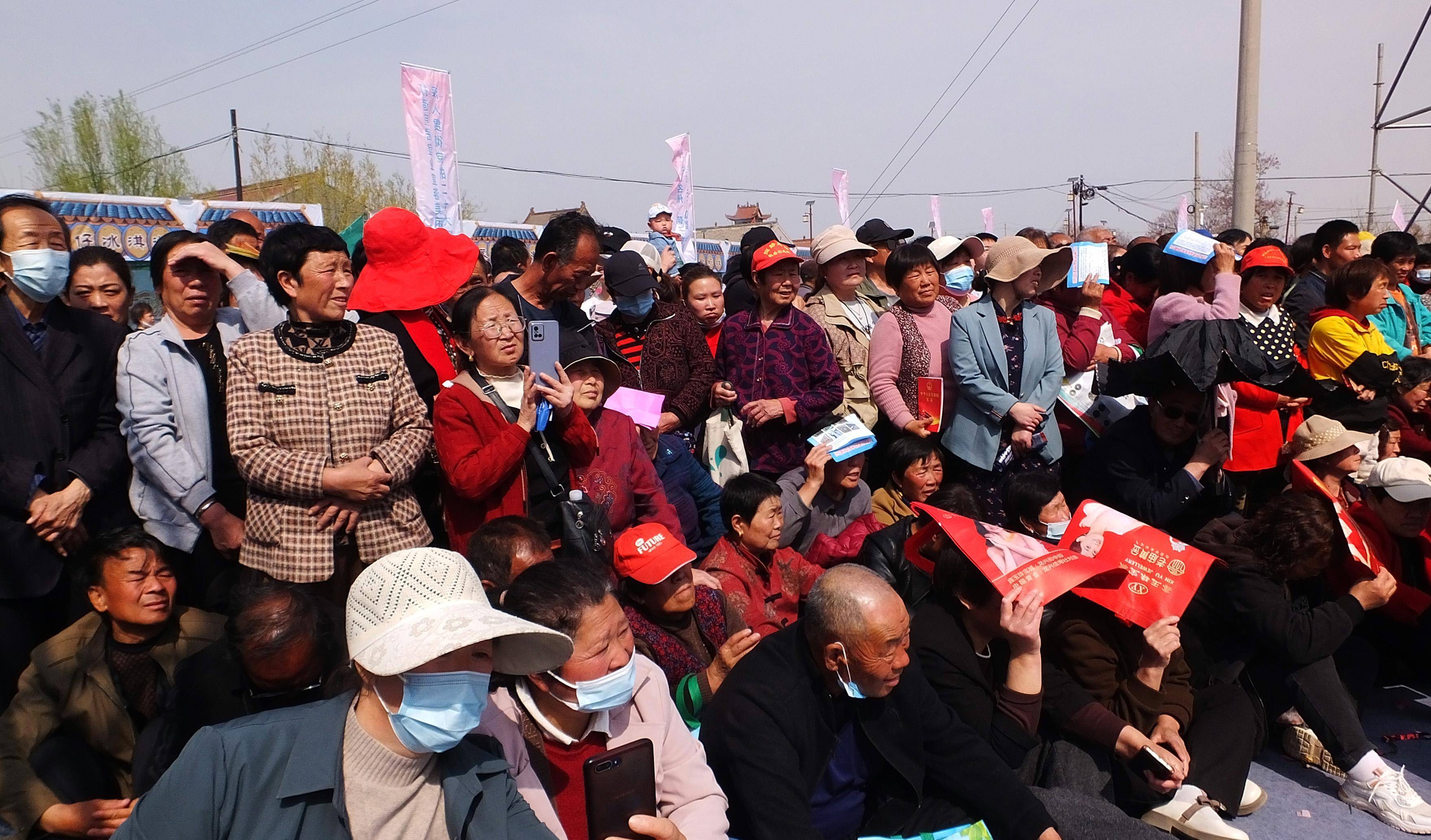 桃农在山西运城市新绛县第十届桃花观光交流会开幕仪式上观看文艺节目表演