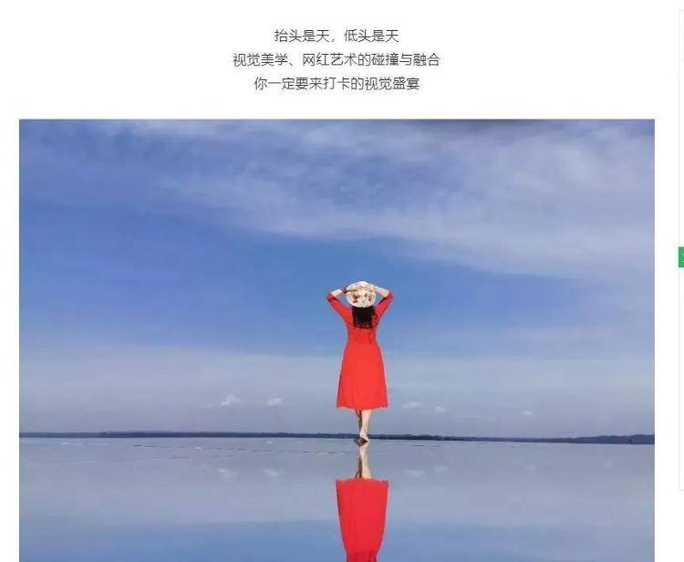 推广文案上写着,“天空之镜”可谓不去就后悔的人间仙境:站在天空之镜上如同悬挂蓝天之上,走在上面犹如漫步云端,悬空而行……