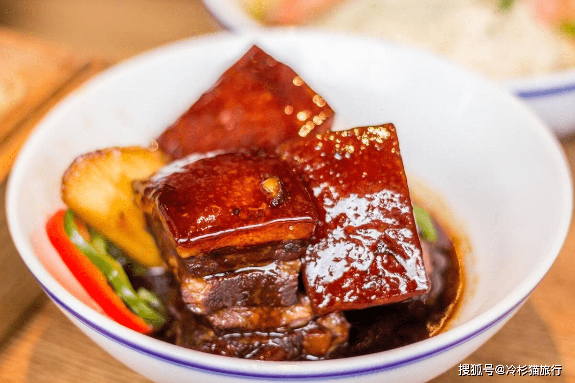 第六道是闻名全国的东坡肉,如今很多地方都在做这道菜,可是味道远远不及杭州本地人的厨艺。据说这是苏东坡开创的美食,流传至今,唯独杭州做得备受推崇。成菜红润油亮,酥软不腻。