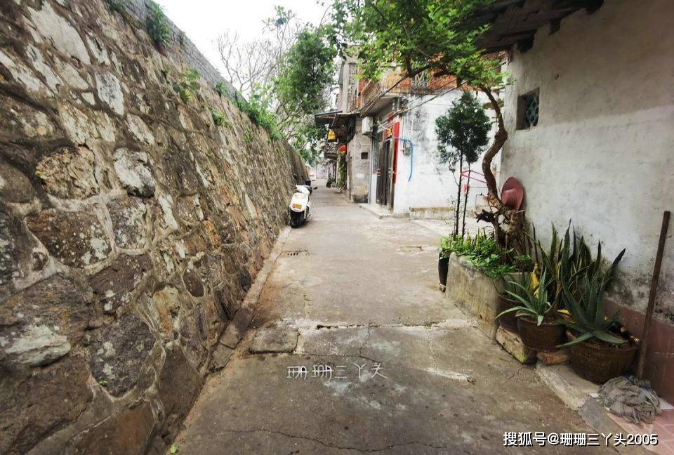 在肇庆的古城墙,珊珊三丫头一直在城墙上试图寻找到这条传说中的草鞋街,很失望,没有找到任何标记牌。最后,我只能打开导航,跟着导航,穿街过巷,在城墙的另一角,我面向台阶俯下身,拾级而下,将头和目光放低,终于找到了“蜷缩”在城墙脚下的草鞋街。
