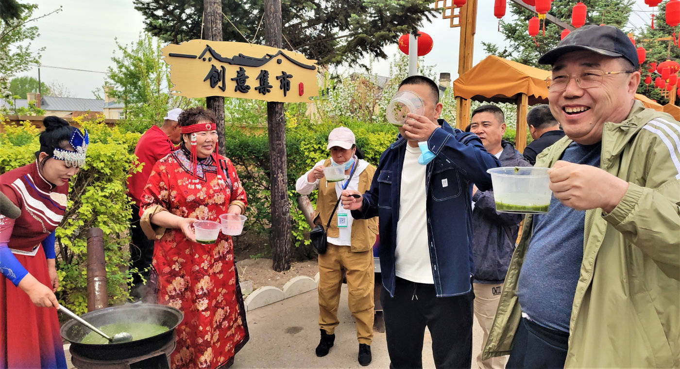 当日,楚勒罕大街正式开集,营造了热闹有趣的文旅消费体验。楚勒罕大街位于梅里斯达斡尔族区哈拉新村,是沿袭自清代起便有的集市“楚勒罕盟会年会”的赶集形式。来自齐齐哈尔市七区九县的特色美食、非遗文创在现场展销,辣菜末、笨鸡蛋、手工煎饼、哈尼卡服饰等受到了各地游客的青睐。