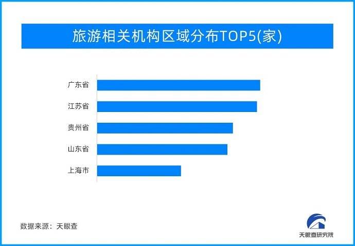 其中,截止到2023年5月,今年,旅游业新增注册相关企业已达18.8万余家;从地域分布来看,广东以43.2万余家位列区域首位;江苏、贵州分列二、三位,分别拥有42.3万余家以及35.9万余家;从成立时间来看,51.1%的相关企业成立于1-5年,成立于10年以上的相关企业占比11.6%;从企业类型来看,65.6%的相关属于企业属于个体工商户。