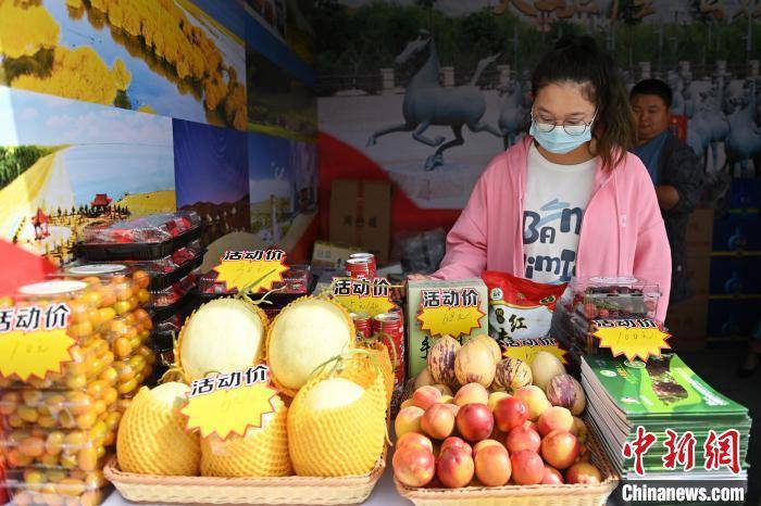 图为活动现场工作人员推荐武威特色产品。 李亚龙 摄