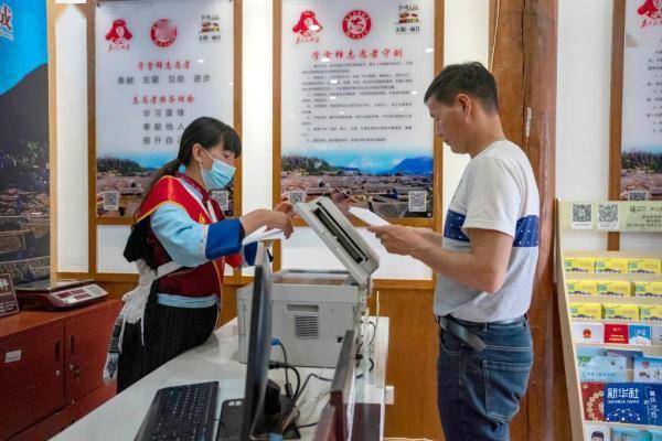 5月18日,一名志愿者(左)在丽江古城学雷锋志愿服务点为游客提供免费的复印服务。