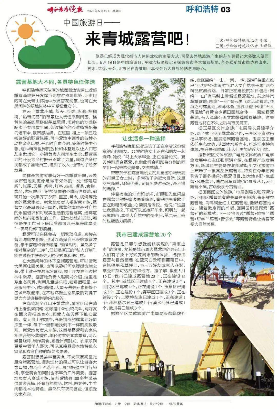 旅游已经成为现代都市人休闲放松的主要方式,可是去外地旅游产生的舟车劳顿让大多数人望而却步。5月19日是中国旅游日,记者探游呼和浩特市各大露营基地,亲身感受城市周边的山水、树木、花香、云朵,让市民在青城即可享受亲近大自然的惬意与舒心。