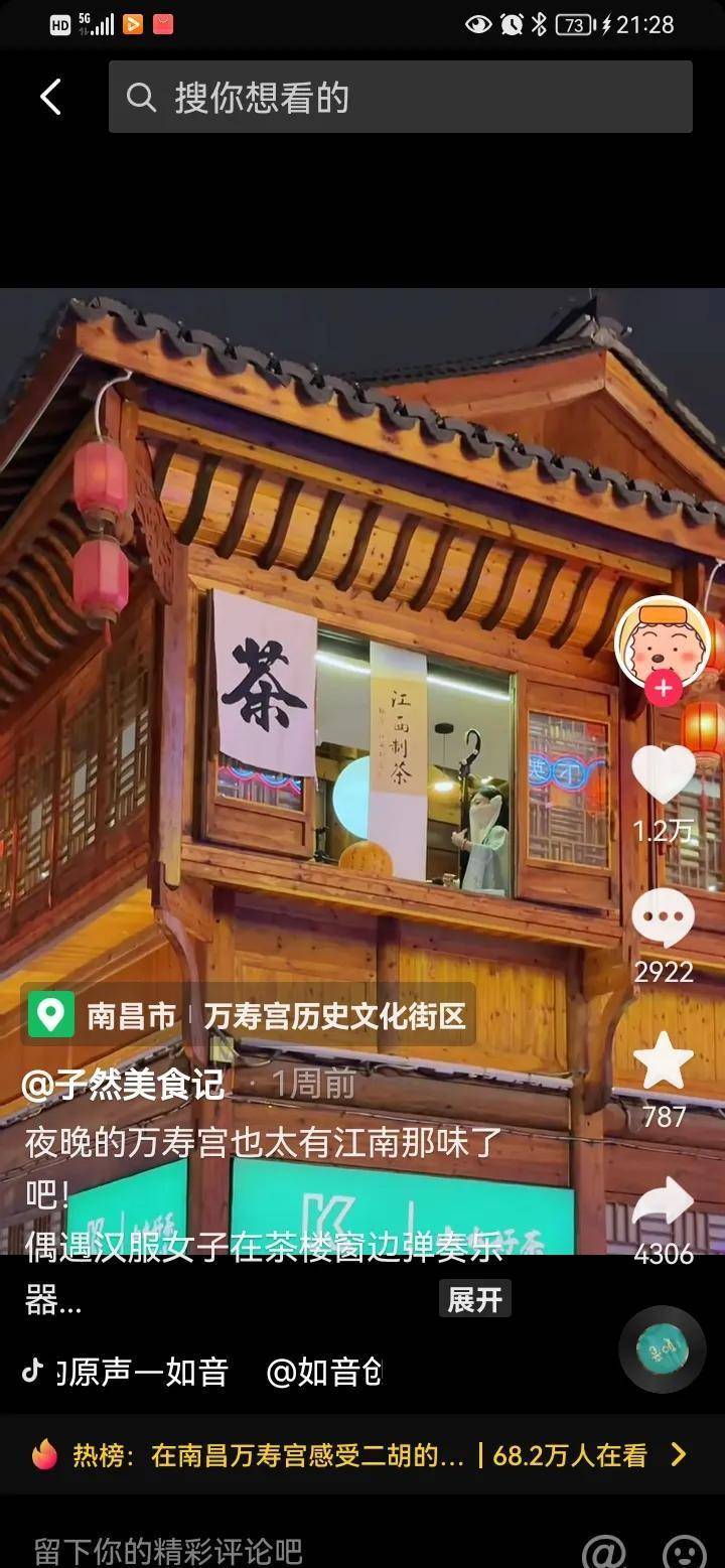 特别是万寿宫历史文化街区,到了夜晚仿佛穿越到了古时候的江南,有穿汉服在鲲茶二楼拉二胡的白色蒙面女孩,也有戴斗笠拉青花瓷的,也有弹古筝的,还有美女飞天表演,还有网红在街头唱歌的,还正形式多种多样,外地来的游客可以大饱眼福!