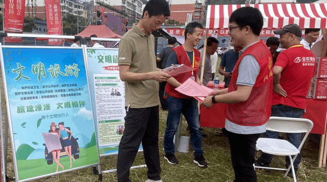 ▲麻阳苗族自治县文旅广体局向群众宣传文明安全旅游知识发放宣传册
